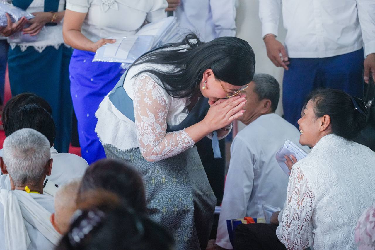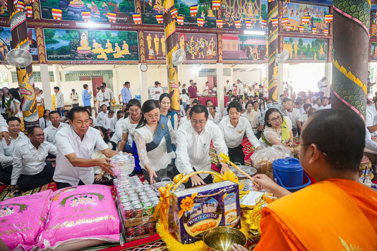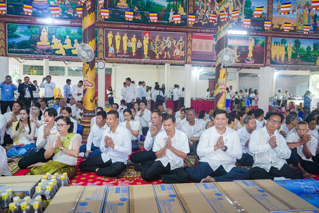 បន្ទាប់ពីធ្វើកិច្ចបូជា ផ្កាទៀនធូក ចំពោះព្រះពុទ្ធរូបព្រះ សម្មាសម្ពុទ្ធ និងនមសកា ព្រះរតនត្រ័យ ទៅតាមគន្លង ព្រះធម៌ព្រះសម្មាសម្ពុទ្ធរួច ថ្នាក់ដឹកនាំ ព្រមទាំងមន្ត្រីរាជការ បានរាបបាត វេរប្រគេននូវទ័យ្យទានវត្ថុដល់ព្រះសង្ឃ សម្រាប់ ប្រើប្រាស់ទៅតាមពុទ្ធានុញ្ញាត្តិ ព្រមទាំងបានឧទ្ទិសកុសលផលបុណ្យជូនដល់វីរ​កងទ័ព​កម្ពុជា ដែលបានពលីក្នុងបុព្វហេតុបេសកកម្មការពារ បូរណភាពទឹកដី និងអធិបតេយ្យជាតិកម្ពុជា តស៊ូប្រយុទ្ធជាមួយ សត្រូវសៀមឈ្លានពាន​ទឹកដី និងជូនឯកឧត្តម លោកជំទាវ លោកយាយ លោកតា ពុទ្ធបរិស័ទ មន្ត្រីរាជការ និងប្រជាពលរដ្ឋក្នុងខេត្ត​ព្រះសីហនុ​ទាំងមូល សូមទទួលបាននូវមគ្គផល កុសលផល បុណ្យ តាមសទ្ធាជ្រះថ្លារៀងៗខ្លួន និងសូមជួបប្រកបតែនូវ ពុទ្ធពរ ទាំង៥ប្រការ គឺអាយុ វណ្ណៈ សុខៈ ពលៈ និង បដិភាណៈ កុំបីឃ្លៀងឃ្លាតឡើយ។​
