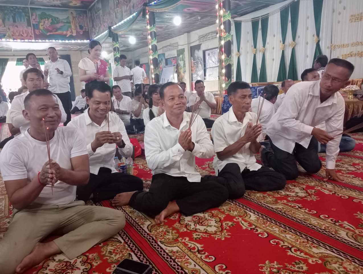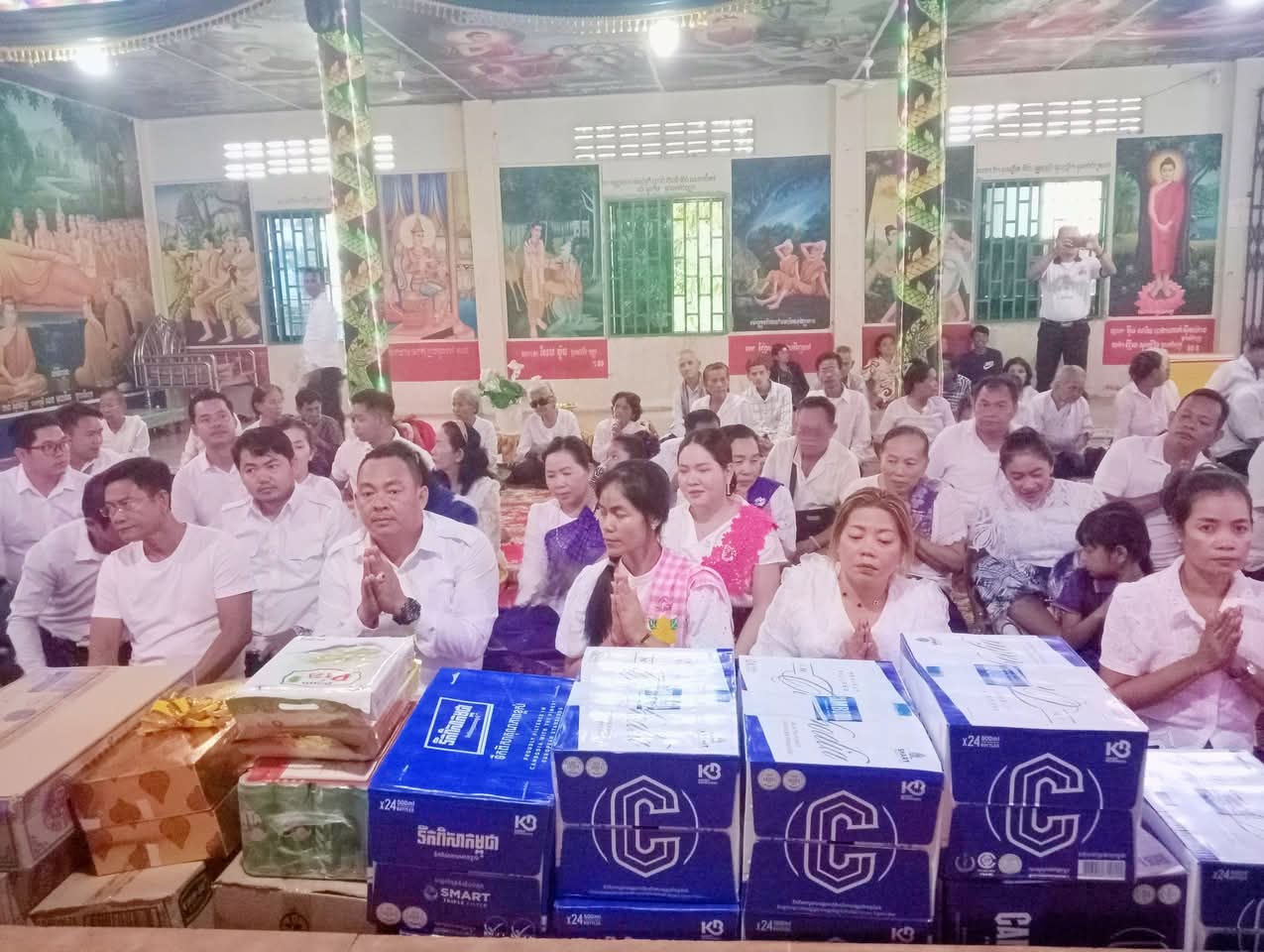 បន្ទាប់ពីធ្វើកិច្ចបូជា ផ្កាទៀនធូក ចំពោះព្រះពុទ្ធរូប ព្រះ សម្មាសម្ពុទ្ធ និងនមសកា ព្រះរតនត្រ័យ ទៅតាម គន្លង ព្រះធម៌ព្រះសម្មាសម្ពុទ្ធរួច ថ្នាក់ដឹកនាំ ព្រមទាំងមន្ត្រីរាជការ សង្កាត់រាមក្រុងព្រះសីហនុ បានវេរប្រគេននូវទ័យ្យទានវត្ថុ ដល់ព្រះសង្ឃ សម្រាប់ ប្រើប្រាស់ទៅតាមពុទ្ធានុញ្ញាត្តិ ព្រមទាំងបានឧទ្ទិស កុសលផលបុណ្យ ជូនឯកឧត្តម លោកជំទាវ លោកយាយ លោកតា ពុទ្ធបរិស័ទ មន្ត្រី រាជការ និងប្រជាពលរដ្ឋក្នុងខេត្តព្រះសីហនុទាំងមូល សូមទទួលបាននូវមគ្គផល់ កុសលផល បុណ្យ តាម សទ្ធាជ្រះថ្លារៀងៗខ្លួន និងសូមជួបប្រកបតែនូវ ពុទ្ធពរ ទាំង៥ប្រការ គឺអាយុ វណ្ណៈ សុខៈ ពលៈ និង បដិភាណៈ កុំបីឃ្លៀងឃ្លាតឡើយ។