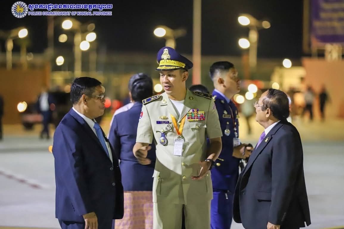 (ខេត្តកណ្តាល): ដោយអនុវត្តតាមការដឹកនាំបញ្ជាដ៏ខ្ពង់ខ្ពស់ របស់ ឯកឧត្តម នាយឧត្តមសេនីយ៍ ស ថេត អគ្គស្នងការនគរបាលជាតិ និងឯកឧត្តម គួច ចំរើន អភិបាល នៃគណៈអភិបាលខេត្តកណ្តាល លោកឧត្តមសេនីយ៍ទោ ឈឿន សុចិត្ត ស្នងការ នគរបាលខេត្តកណ្តាល បានអញ្ជើញចូលរួម និង ដឹកនាំកងកម្លាំងនគរបាលក្រោមឱវាទ ចូលរួម សហការការពារ សន្តិសុខ សណ្តាប់ធ្នាប់ក្នុងពិធី ទទួលដំណើរសម្តេចមហាបវរធិបតី ហ៊ុន ម៉ាណែត នាយករដ្ឋមន្ត្រី នៃព្រះរាជាណាចក្រកម្ពុជា និង លោកជំទារបណ្ឌិត ពេជ ចន្ទមុនី្ន ហ៊ុន ម៉ាណែត ដឹកនាំគណៈប្រតិភូជាន់ខ្ពស់ នៃរាជរដ្ឋាភិបាលកម្ពុជា និវត្តន៍មកកាន់មាតុប្រទេសវិញ នៅអាកាសយានដ្ឋានអន្តរជាតិតេជោ កាលពីរាត្រីថ្ងៃទី២៨ ខែតុលា ឆ្នាំ២០២៥ក្រោយពីបញ្ចប់ការចូលរួមកិច្ចប្រជុំកំពូលអាស៊ាន លើក ទី៤៧ និងកិច្ចប្រជុំកំពូលពាក់ព័ន្ធ នៅទីក្រុងគូ ឡាឡាំពួរ នៃប្រទេសម៉ាឡេស៊ី។