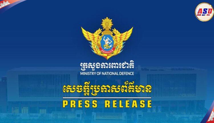 សេចក្តីប្រកាសព័ត៌មាន|លោកជំទាវ ឧត្តមសេនីយ៍ឯក ម៉ាលី សុជាតា អ្នកនាំពាក្យក្រសួងការពារជាតិ នៃព្រះរាជាណាចក្រកម្ពុជា សូមជម្រាបជូនសាធារណជន អ្នកសារព័ត៌មានជាតិ និងអន្តរជាតិមេត្តាជ្រាបថា៖