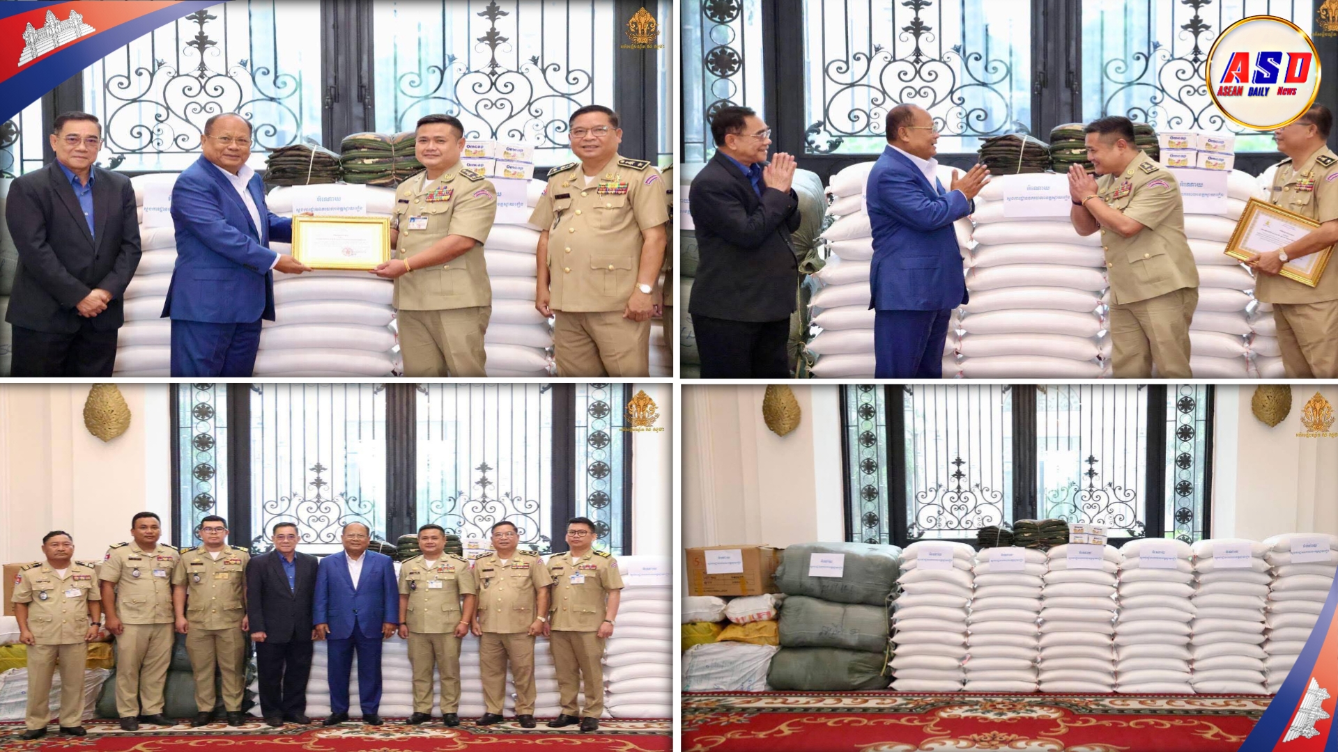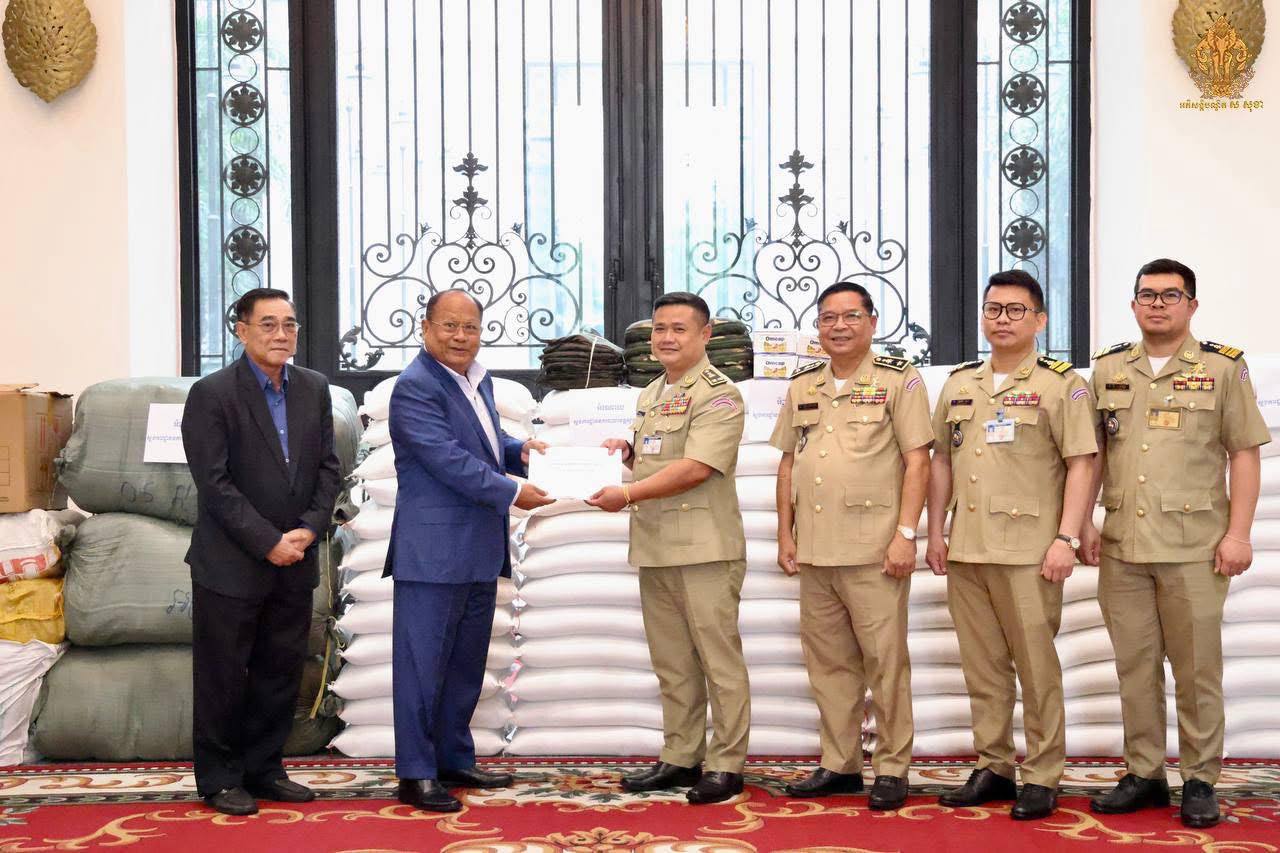(ភ្នំពេញ): នៅព្រឹកថ្ងៃសុក្រ ទី៧ ខែវិច្ឆិកា ឆ្នាំ២០២៥ នេះ ឯកឧត្តមសន្តិបណ្ឌិត ខៀវ សុភ័គ រដ្ឋលេខាធិការក្រសួងមហាផ្ទៃ នឹងឯកឧត្តម អ៊ូ វណ្ណា អនុរដ្ឋលេខាធិការ និងជានាយករងខុទ្ទកាល័យប្រចាំការ តំណាងដ៏ខ្ពង់ខ្ពស់ ឯកឧត្តមអភិសន្តិបណ្ឌិត ស សុខា ឧបនាយករដ្ឋមន្ត្រី រដ្ឋមន្ត្រីក្រសួងមហាផ្ទៃ បានអញ្ជើញ ទទួលអំណោយពីស្នងការដ្ឋាននគរបាល ខេត្តស្វាយរៀងឧបត្ថម្ភជូនដល់ក្រសួងមហាផ្ទៃ សម្រាប់យកទៅឧបត្ថម្ភបន្តដល់សមរភូមិមុខ និង ជនភៀសសឹក។