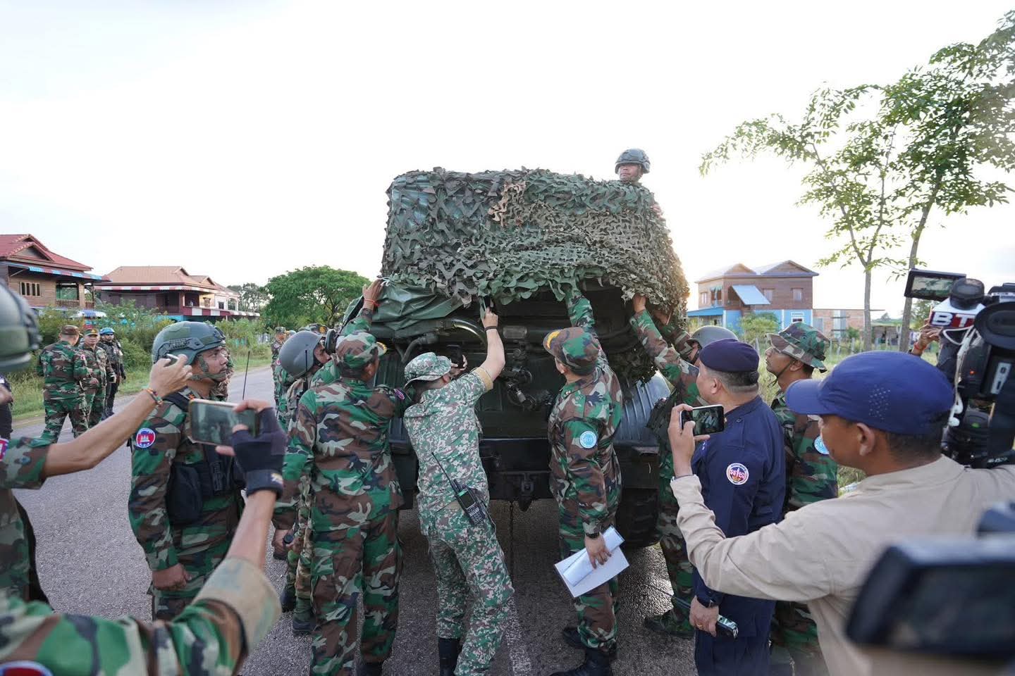 On November 8, 2025 at 6:00 PM, Cambodia continued implementing the 2nd stage of Phase 1 of the removal of heavy and destructive weapons and equipment at Chong Kal District, Oddar Meanchey Province, in accordance with the action plan signed by Lieutenant General Pov Heng, the commander of the Military Region 4 of the Kingdom of Cambodia, and Major General Virakyuth Raksing, the Commander of the 2nd Army Area of the Kingdom of Thailand, on October 31, 2025.