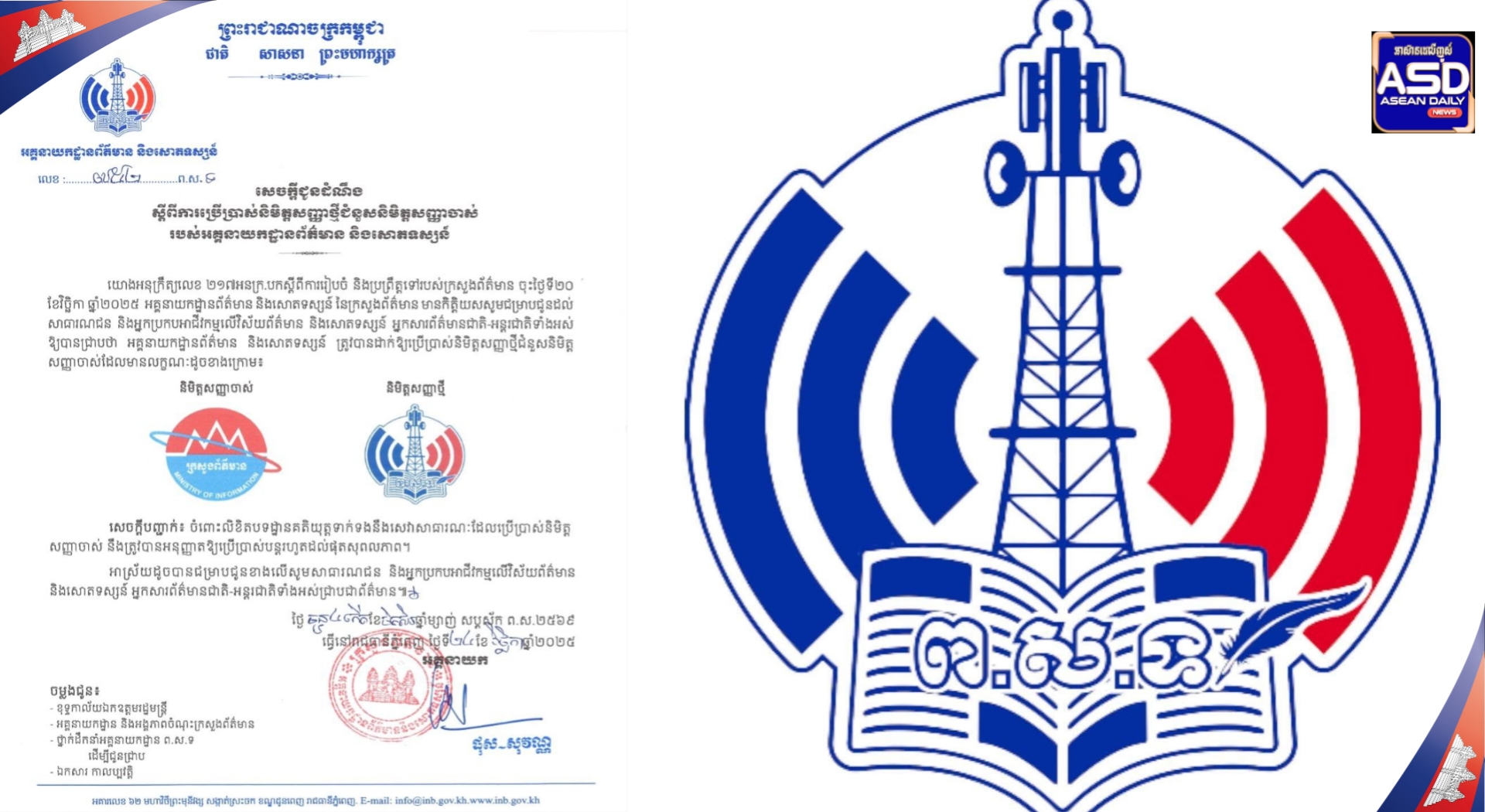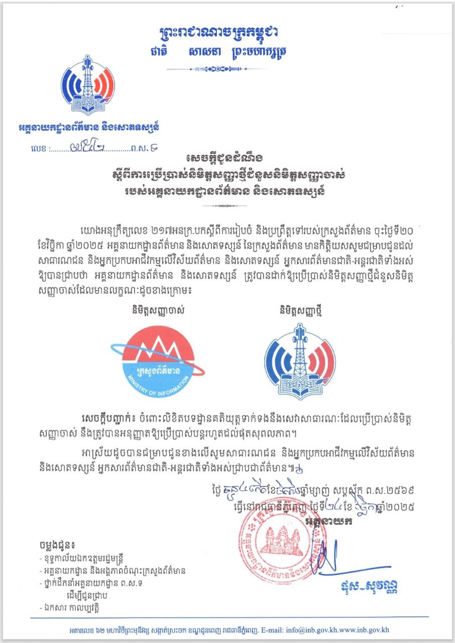 សេចក្ដីជូនដំណឹង ស្ដីពីការប្រើប្រាស់និមិត្តសញ្ញាថ្មីជំនួសនិមិត្តសញ្ញាចាស់ របស់អគ្គនាយកដ្ឋានព័ត៌មាន និងសោតទស្សន៍.