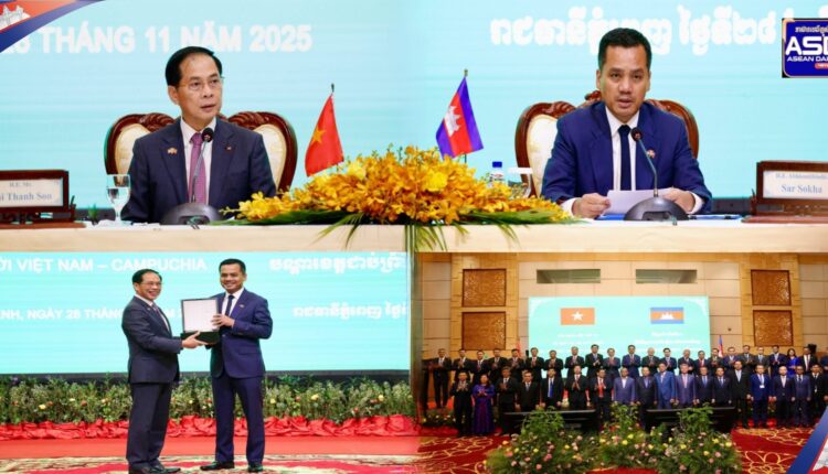 (ភ្នំពេញ): នារសៀលថ្ងៃសុក្រ ទី២៨ ខែវិច្ឆិកា ឆ្នាំ២០២៥ នេះ ឯកឧត្តមអភិសន្តិបណ្ឌិត ស សុខា ឧបនាយករដ្ឋមន្ត្រី រដ្ឋមន្ត្រីក្រសួងមហាផ្ទៃ និងជាប្រធាន គណៈប្រតិភូ នៃព្រះរាជាណាចក្រកម្ពុជា បាន អញ្ជើញជាសហអធិបតីជាមួយឯកឧត្តម ប៊ួយ ចាញ់សឺន (Bui Thanh Son) ឧបនាយក រដ្ឋមន្ត្រី នៃសាធារណរដ្ឋសង្គមនិយមវៀតណាម ដឹកនាំកិច្ចប្រជុំលើកទី១៣ ស្តីពីកិច្ចសហប្រតិបត្តិ ការ និងការអភិវឌ្ឍបណ្តាខេត្តជាប់ព្រំដែន កម្ពុជា-វៀតណាម នៅសណ្ឋាគារ រ៉េស៊ីដង់ សុខា ភ្នំពេញ រាជធានីភ្នំពេញ។
