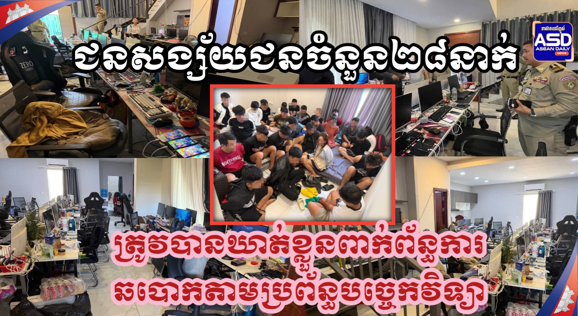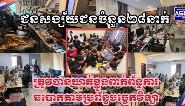 ជនសង្ស័យជនចំនួន២៨នាក់ត្រូវបានឃាត់ខ្លួនពាក់ព័ន្ធការឆបោកតាមប្រព័ន្ធបច្ចេកវិទ្យាក្នុងប្រតិបត្តិការដឹកនាំដោយគណៈបញ្ជាការឯកភាពរដ្ឋបាលរាជធានីភ្នំពេញ.