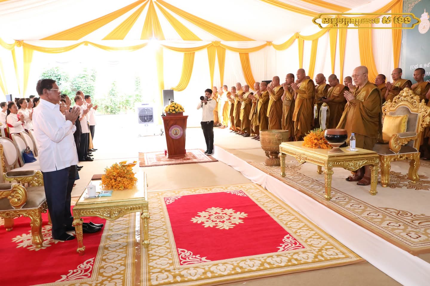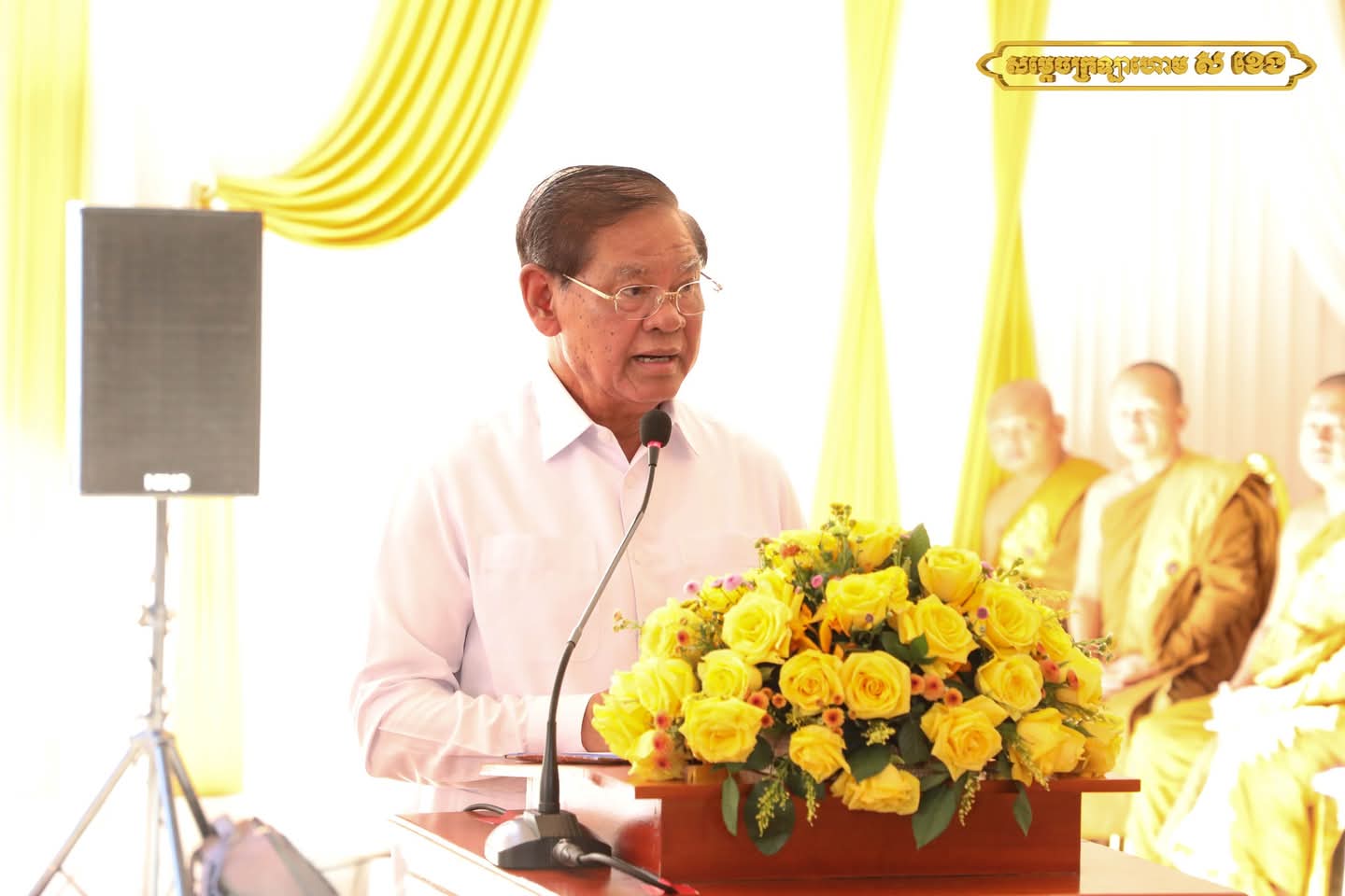 អញ្ជើញមានប្រសាសន៍នាឱកាសនោះ សម្តេចក្រឡាហោម ស ខេង សូមសម្តែងនូវគារវកិច្ចចំពោះព្រះវត្តមាន របស់សម្តេច ព្រះសង្ឃរាជ សម្តេចព្រះសង្ឃនាយករង ព្រះថេរានុត្ថេរៈគ្រប់ព្រះអង្គ និងស្វាគមន៍ ចំពោះវត្តមានឯកឧត្តម លោកជំទាវ ឧកញ៉ា អស់លោក លោកស្រី ភ្ញៀវកិត្តិយស និងបងប្អូនពុទ្ធបរិស័ទ ដែលអញ្ជើញចូលរួមក្នុងពិធីដ៏អធិកអធមនេះ។