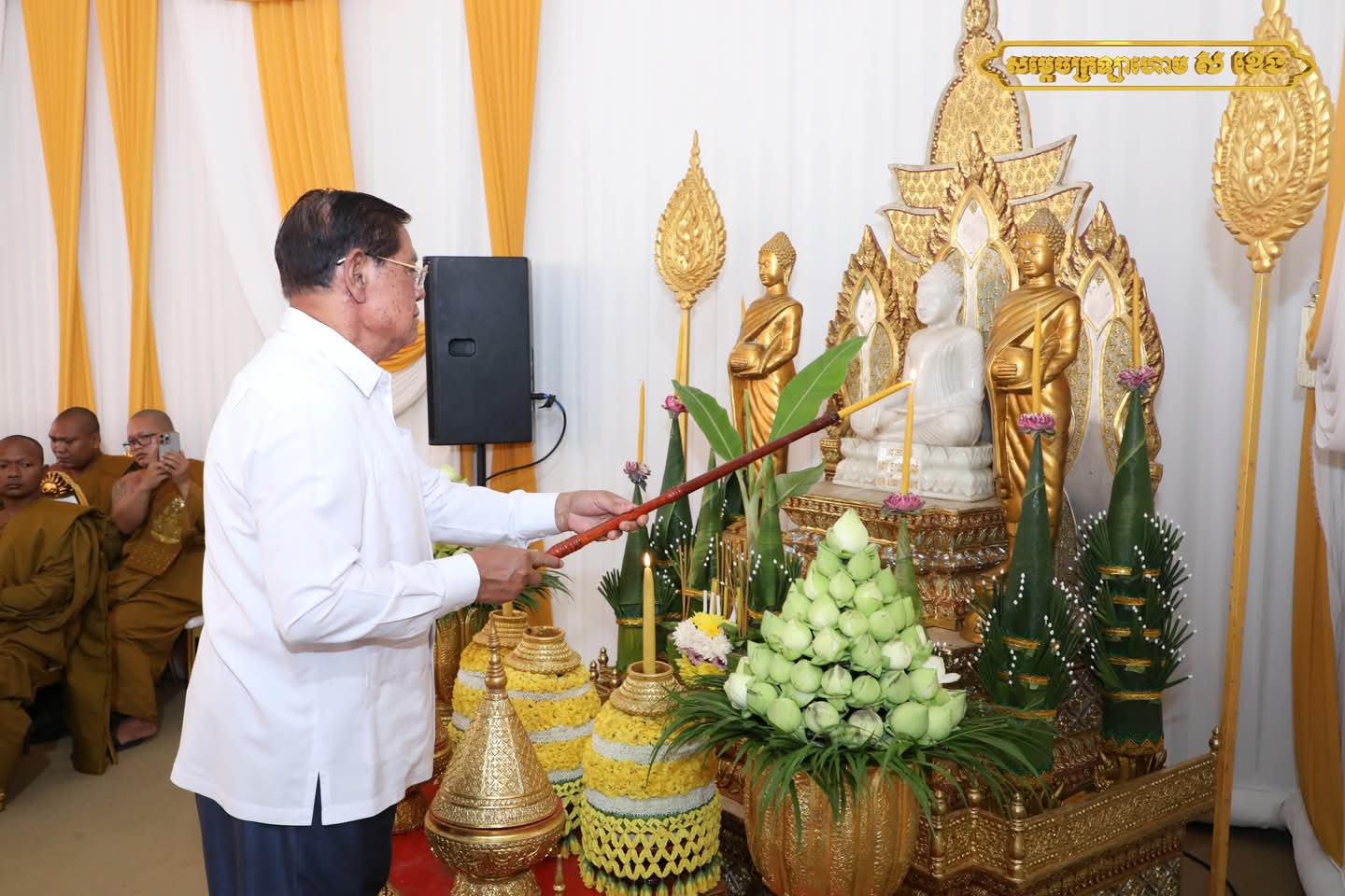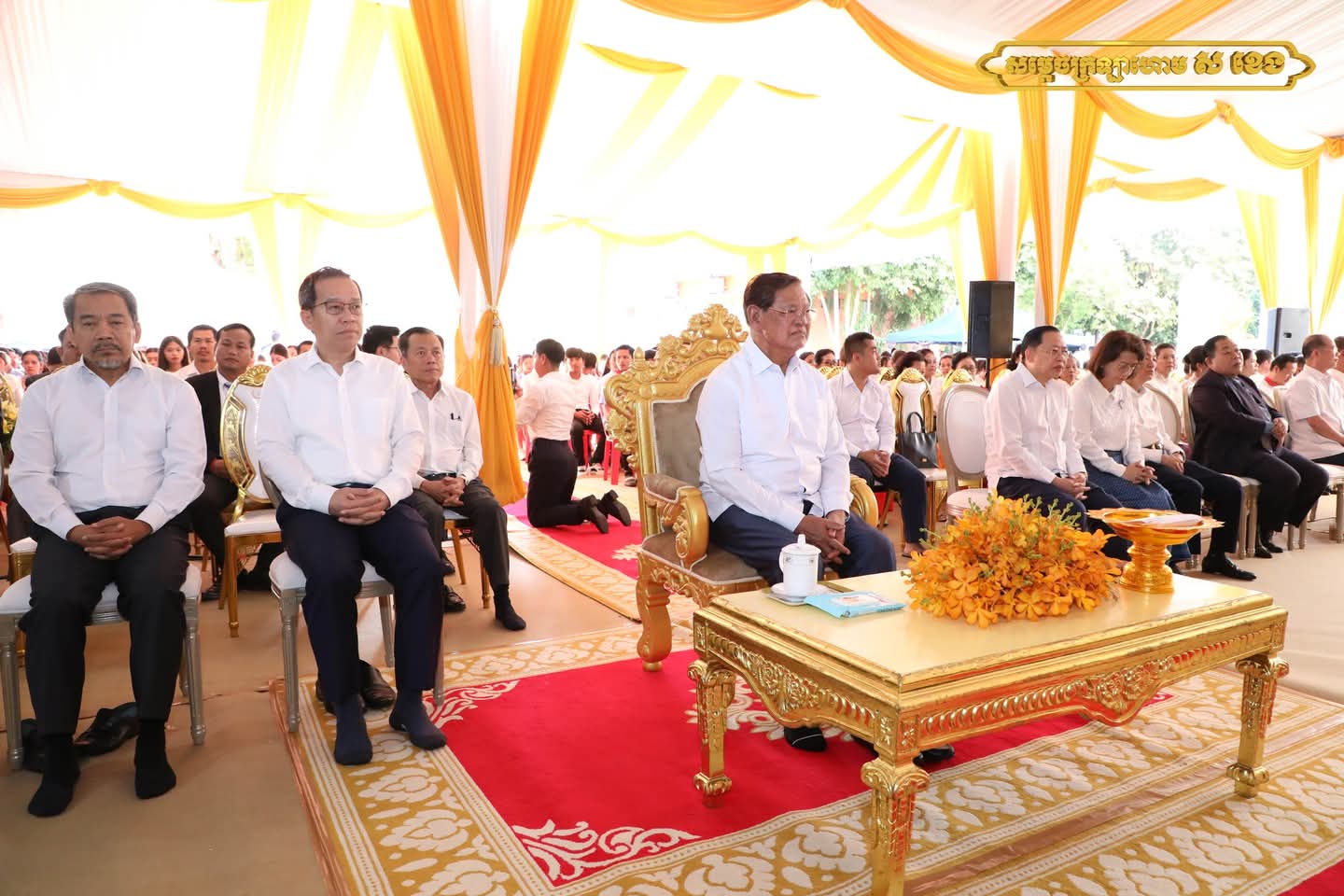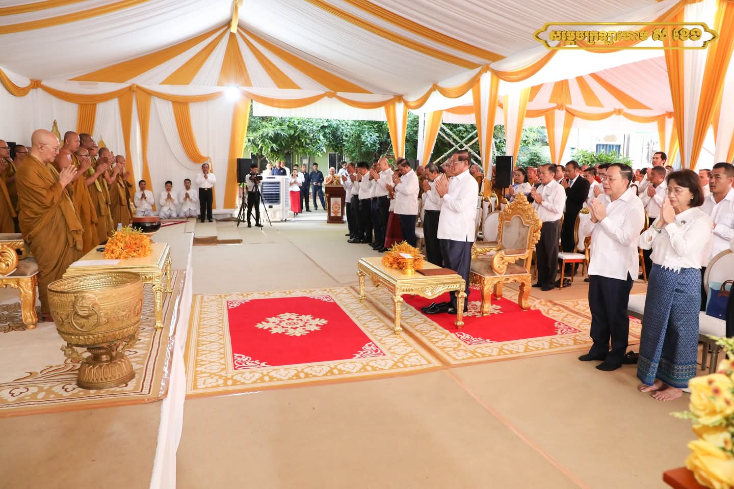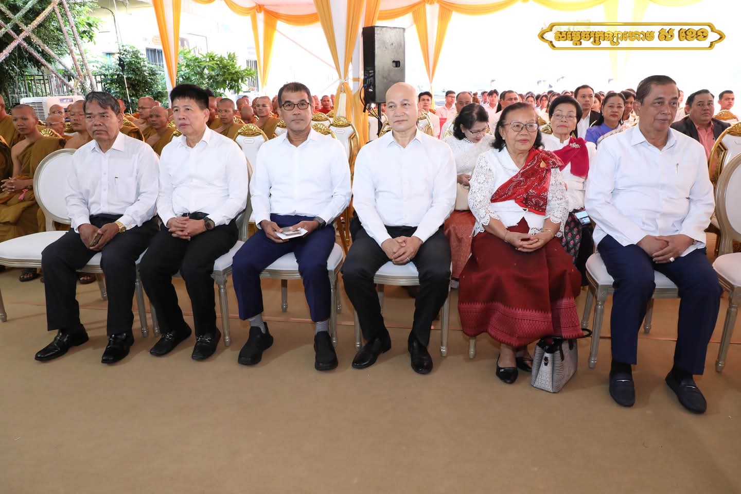 ព្រះរាជពិធីប្រារព្ធក្រោមអធិបតីភាពដ៏ខ្ពង់ខ្ពស់ សម្តេចព្រះអភិសិរីសុគន្ធាមហាសង្ឃរាជាធិបតី កិត្តិឧទ្ទេសបណ្ឌិត បួរ គ្រី សម្តេចព្រះមហាសង្ឃរាជ នៃគណៈធម្មយុត្តិកនិកាយ នៃព្រះរាជាណាចក្រកម្ពុជា ឯកឧត្តមបណ្ឌិត ធន់ វឌ្ឍនា អនុប្រធានទី២ នៃព្រឹទ្ធសភា តំណាងដ៏ខ្ពង់ខ្ពស់ សម្តេចអគ្គមហាសេនាបតីតេជោ ហ៊ុន សែន ប្រមុខរដ្ឋស្តីទី ឯកឧត្ដម ចាយ បូរិន រដ្ឋមន្ត្រីក្រសួងធម្មការ និងសាសនា លោកជំទាវកិត្តិបណ្ឌិត អ៊ឹង កន្ថាផាវី រដ្ឋមន្ត្រីក្រសួងកិច្ចការនារី និងមានការនិមន្តចូលរួមពី សម្ដេចព្រះសង្ឃនាយករង ព្រះរាជាគណៈ ព្រះមេគណៈ សហការីគណៈព្រះមន្ត្រីសង្ឃ គ្រប់ឋានានុក្រម ទូទាំងព្រះរាជាណាចក្រកម្ពុជា ព្រមទាំងឯកឧត្ដម លោកជំទាវ ឧត្ដមទីប្រឹក្សា ទីប្រឹក្សាផ្ទាល់ សម្ដេចព្រះមហាសង្ឃរាជ បួរ គ្រី និងញាតិញោមមហាពុទ្ធបរិស័ទគ្រប់ទិសទី យ៉ាងច្រើនកុះករ ឱឡារិកអធិកអធម។