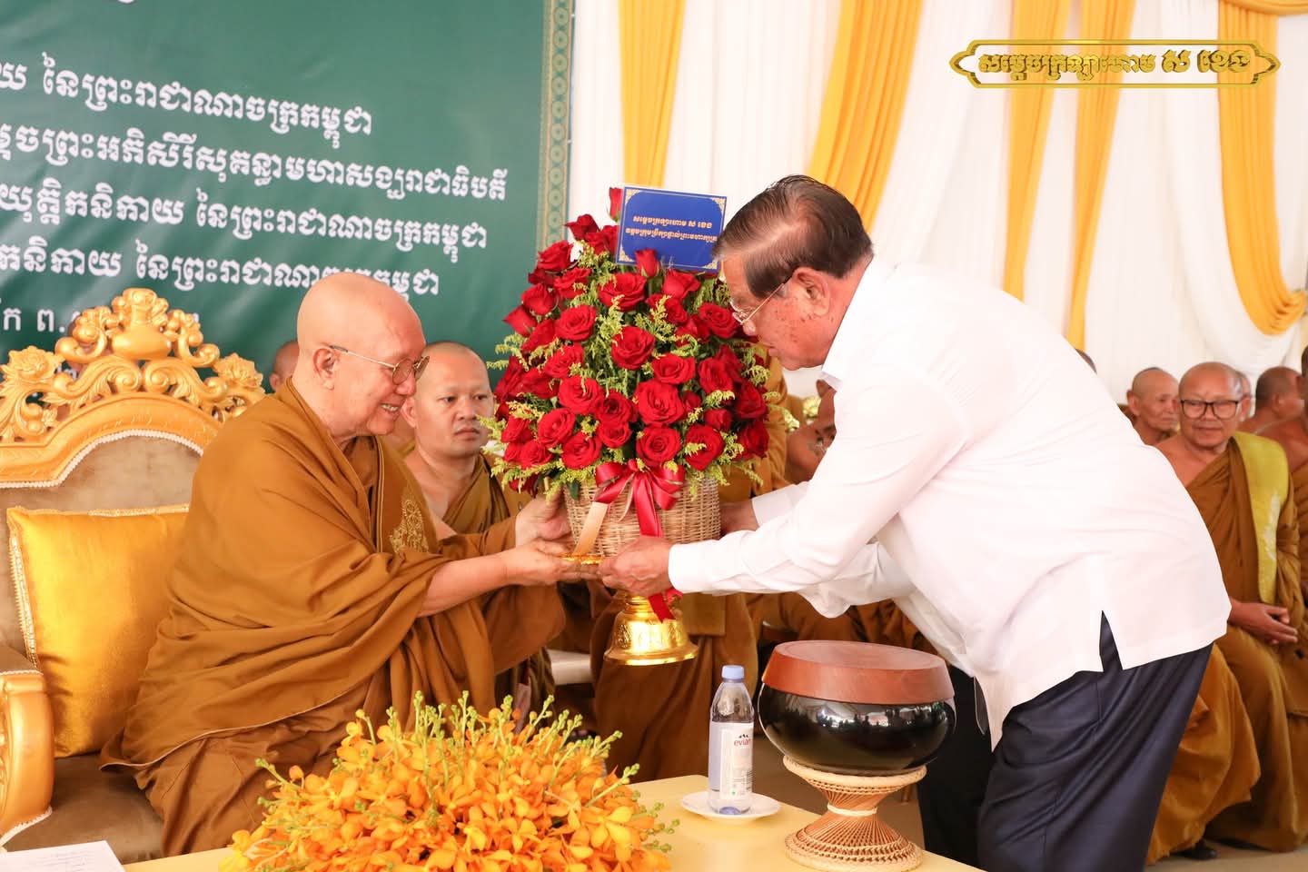 សម្តេច ក៏សូមថ្លែងអំណរព្រះគុណយ៉ាងជ្រាលជ្រៅ ចំពោះសម្តេចព្រះសង្ឃរាជ សម្តេចព្រះសង្ឃនាយករង ព្រះថេរានុត្ថេរៈគ្រប់ព្រះអង្គ និងសូមអរគុណចំពោះលោកអាចារ្យ គណៈកម្មការវត្ត និងពុទ្ធបរិស័ទនៅគ្រប់ទិសទី ដែលជានិច្ចកាលបានចូលរួមកសាងសមិទ្ធផលនានា បម្រើដល់បុព្វហេតុនៃព្រះពុទ្ធ សាសនា ដែលជាសាសនារបស់រដ្ឋ ឱ្យមានការវិឌ្ឍរីកចម្រើនជាលំដាប់ ស្របតាម បរិបទប្រែប្រួលនៃសង្គមជាតិ ។