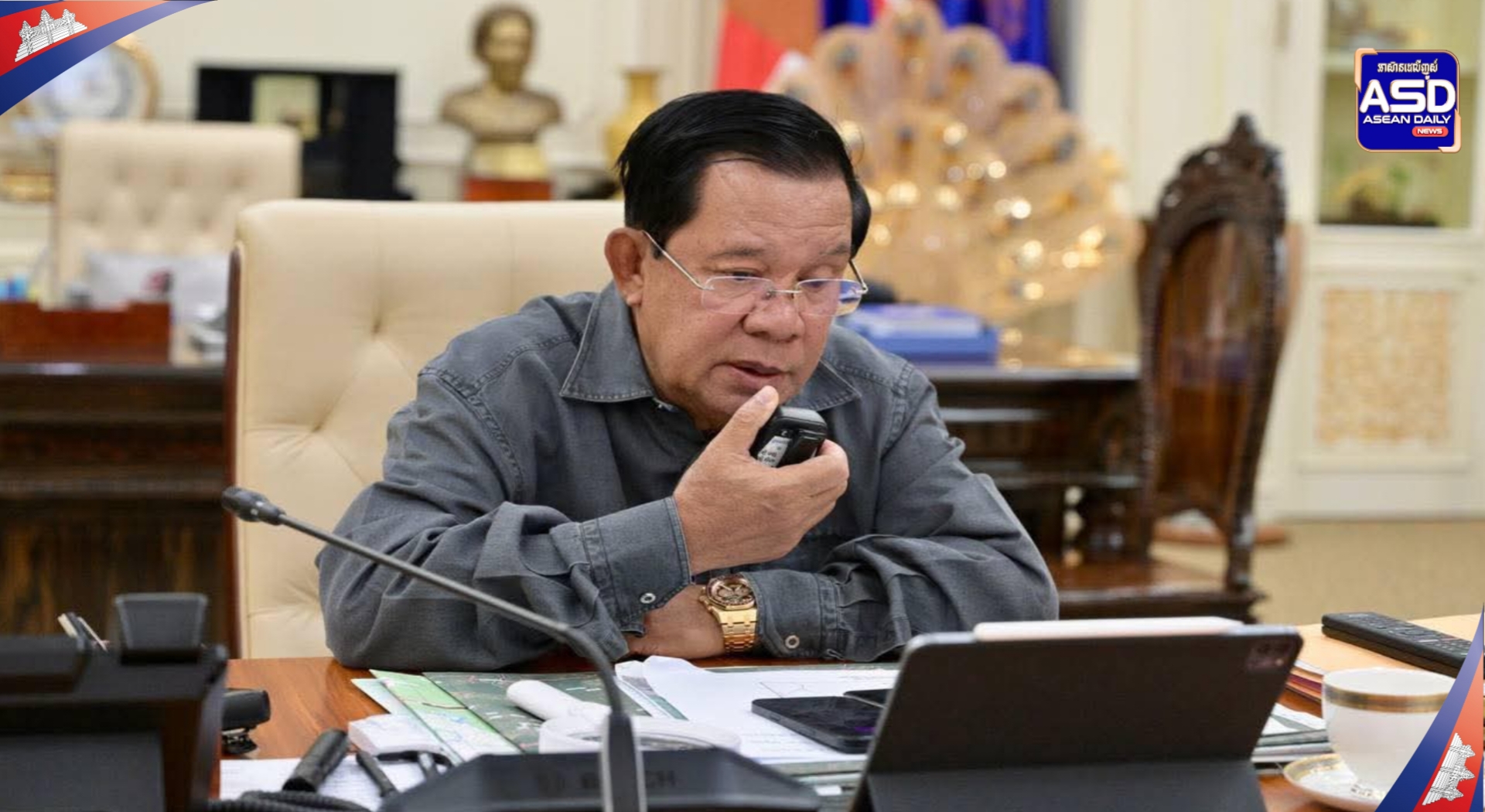(ភ្នំពេញ):ប្រមុខរដ្ឋស្តីទីសម្តេចអគ្គមហាសេនាបតីតេជោ ហ៊ុន សែន នៅមុននេះបន្តិចសម្តេចបានធ្វេីការបង្ហោះសារលេីបណ្តាញទំនាក់ទំនងសង្គមរបស់សម្តេចឆ្លេីយតបទៅនឹងការឈ្លានពានទឹកដីរបស់ចោរសៀម