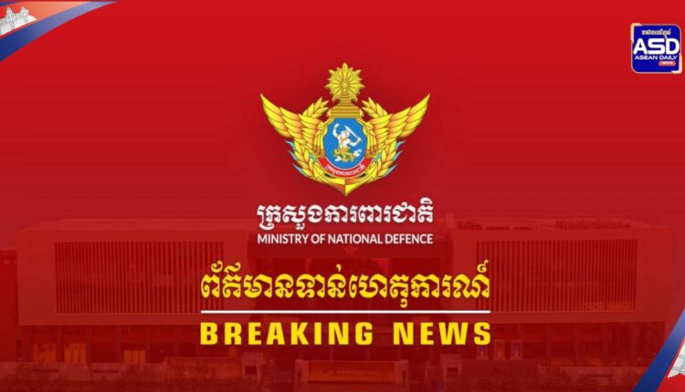 (ភ្នំពេញ)ក្រសួងការពារជាតិសូមជម្រាបជូននូវស្ថានការណ៍នៅតាមបន្ទាត់ព្រំដែនកម្ពុជា-ថៃ អំពី ករណីយោធាថៃ បានធ្វើសកម្មភាព និងបើកការបាញ់ប្រហារមកក្នុងដែនអធិបតេយ្យស្របច្បាប់របស់កម្ពុជា នៅក្នុងភូមិសាស្រ្តយោធភូមិភាគទី៤ ក្នុង ខេត្តឧត្តរមានជ័យ ចាប់ផ្តើមការបាញ់ប្រហារនៅវេលាម៉ោង ០៤:៤០នាទី នៅព្រឹក ថ្ងៃទី១១ ខែធ្នូ ឆ្នាំ២០២៥ ដោយបានបាញ់កាំភ្លើងធំចូលក្នុងភូមិសាស្ត្រប្រាសាទខ្នា។ កងកម្លាំងកម្ពុជាបាននឹងកំពុងប្រយុទ្ធតតាំងជាមួយសត្រូវឈ្លាពានយ៉ាងស្វិតស្វាញ់ និងយ៉ាងរឹងមាំ ក្នុងការបំពេញតួនាទីរបស់ខ្លួន ដើម្បីការពារបូរណភាពទឹកដីរបស់កម្ពុជា។