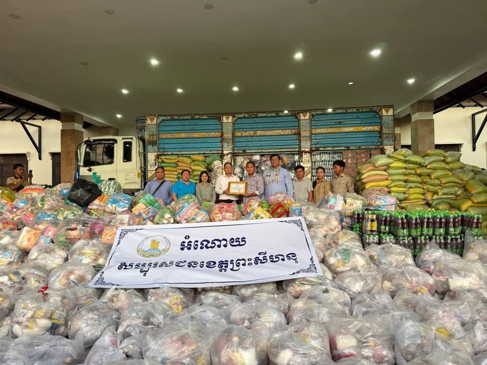 (ខេត្តព្រះសីហនុ): ថ្ងៃទី១៨ ខែធ្នូ ឆ្នាំ២០២៥ លោក នៃ គង់ អភិបាលរងខេត្ត តំណាងដ៏ខ្ពង់ខ្ពស់ ឯកឧត្តម ម៉ាង ស៊ីណេត អភិបាល នៃគណៈអភិបាលខេត្តព្រះសីហនុ បានដឹកនាំក្រុមការងារ នាំយកអំណោយជាស្បៀងអាហារ គ្រឿងឧបភោគបរិភោគ ថ្នាំសង្កូវ និងសម្ភារប្រើប្រាស់ផ្សេងៗទៀត ដែលបានមកពីការចូលរួមបរិច្ចាគរបស់បងប្អូនប្រជាពលរដ្ឋនៅខេត្តព្រះសីហនុ ជូនដល់វីរកងទ័ពខ្មែរនៅសមរភូមិមុខដែលកំពុងការពារបូរណភាពដែនដីខ្មែរ និងប្រជាពលរដ្ឋភៀសសឹកប្រគល់ជូនដល់រដ្ឋបាលខេត្តសៀមរាប ដើម្បីធ្វើការចាត់ចែងបន្ត។