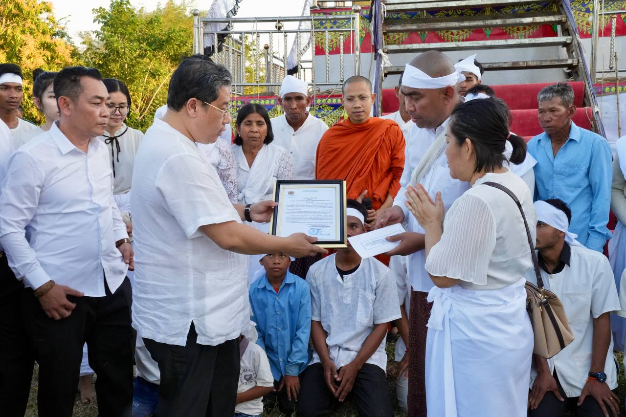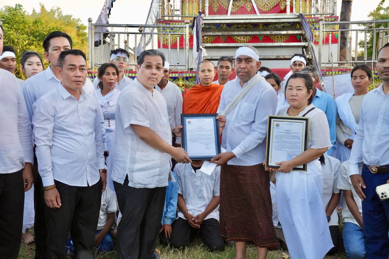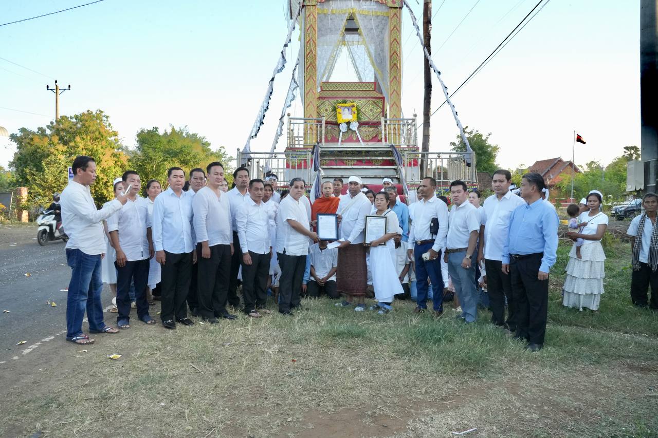(ខេត្ត​ព្រៃវែង)​: នារសៀលថ្ងៃទី១៨ ខែធ្នូ ឆ្នាំ២០២៥ ឯកឧត្តមបណ្ឌិត សុខ ប្រសិទ្ធិ ទីប្រឹក្សាសម្ដេចបវរធិបតី ហ៊ុន ម៉ាណែ ត នាយករដ្ឋមន្ត្រីនៃព្រះរាជាណាចក្រកម្ពុជា និង ជារដ្ឋលេខាធិការក្រសួងព័ត៌មាន និងជាប្រធាន ក្រុមប្រឹក្សាភិបាល នៃគណៈកម្មការប្រតិបត្តិ សម្ពន្ធយុវជនអាហារូបករណ៍(ស២) អញ្ជើញ ចូលរួមគោរពវិញ្ញាណក្ខន្ធសពឧបាសិកា ផាត់ អ៊ួ ក ដែលត្រូវ ជាម្តាយបង្កើតបស់ ឯកឧត្តម ហុក ហ៊ាង អគ្គលេខាធិការរង (ស.យ.អ.ក) បាន ទទួលមរណភាពនៅថ្ងៃពុធ ១២រោច ខែមិគសិរ ឆ្នាំម្សាញ់ សប្តស័ក ព.ស.២៥៦៩ ត្រូវនឹងថ្ងៃទី១៧ ខែធ្នូ ឆ្នាំ២០២៥ វេលាម៉ោង ៨១៥នាទីយប់ ក្នុង ជន្មាយុ ៨៧ឆ្នាំ ដោយជរាពាធ។ ដែលពិធីប្រារព្ធ ធ្វើនៅហដ្ឋាន ឃុំកញ្ជ្រៀច ស្រុកកញ្ចៀច ខេត្តព្រៃវែង ។