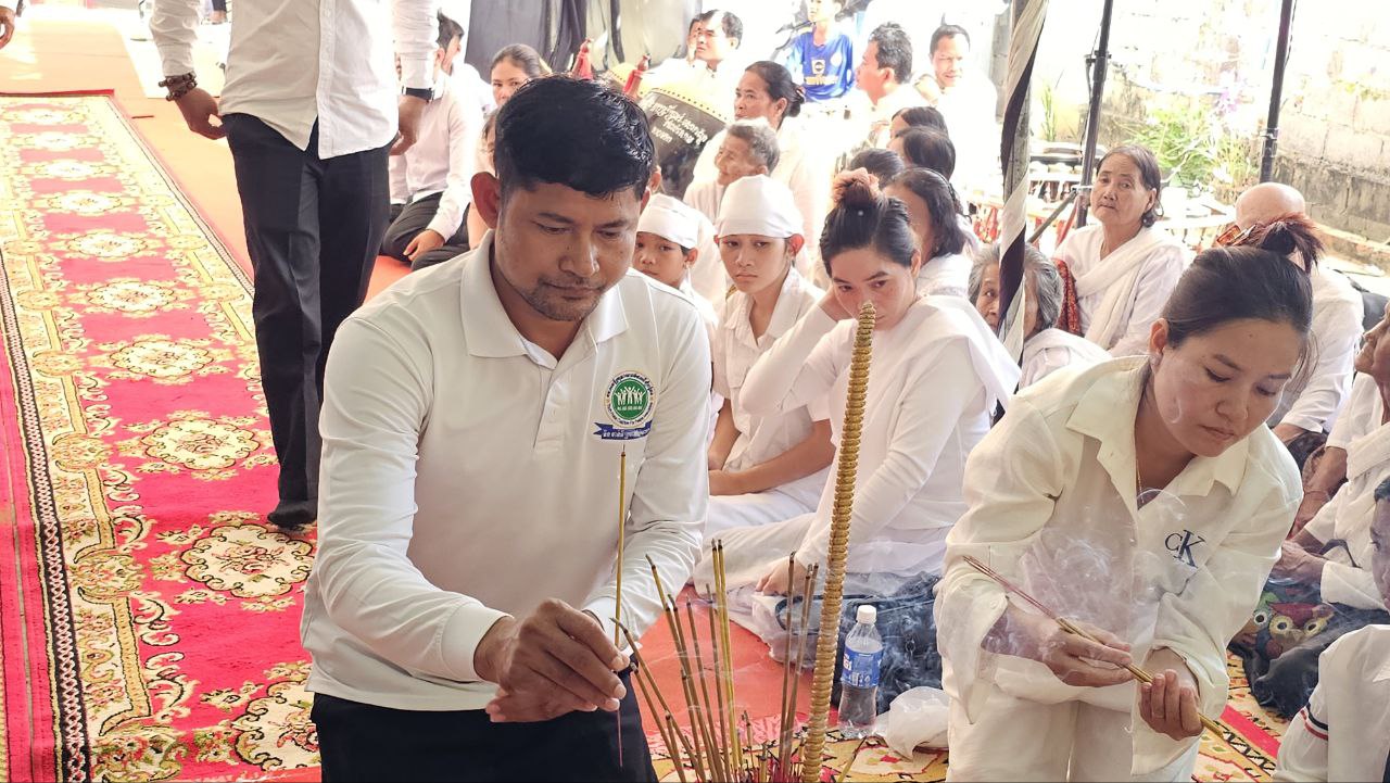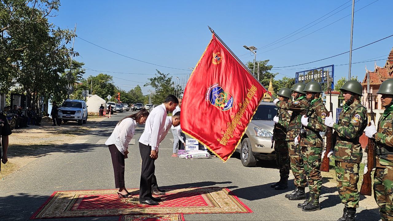 Mr. Min Chanthy also expressed his condolences and sympathies to the family of the deceased soldier who sacrificed his life for the integrity of the nation, the homeland, and the Cambodian people. The body of Lieutenant Colonel Suy Samath, a frontline soldier, was laid to rest at his home in Trapaing Veng village, Cheung Kuon commune, Samrong district, Takeo province, according to traditional rites.