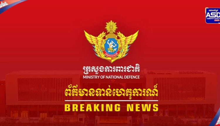 (រាជធានីភ្នំពេញ): ក្រសួងការពារជាតិសូមជម្រាបជូននូវស្ថានការណ៍នៅតាមបន្ទាត់ព្រំដែនកម្ពុជា-ថៃ អំពី ករណីយោធាថៃនៅតែបន្តធ្វើសកម្មភាពបាញ់ប្រហារចូលទីតាំងប្រជាជនស៊ីវិលកម្ពុជា និងហេដ្ឋារចនាសម្ព័ន្ធស៊ីវិល នៅយោធភូមិភាគទី៥ ក្នុងភូមិសាស្ត្រ ភូមិក្បាលកោះ សង្កាត់អូរជ្រៅ ក្រុងប៉ោយប៉ែត ខេត្តបន្ទាយមានជ័យ នាថ្ងៃទី២២ ខែធ្នូ ឆ្នាំ២០២៥៖