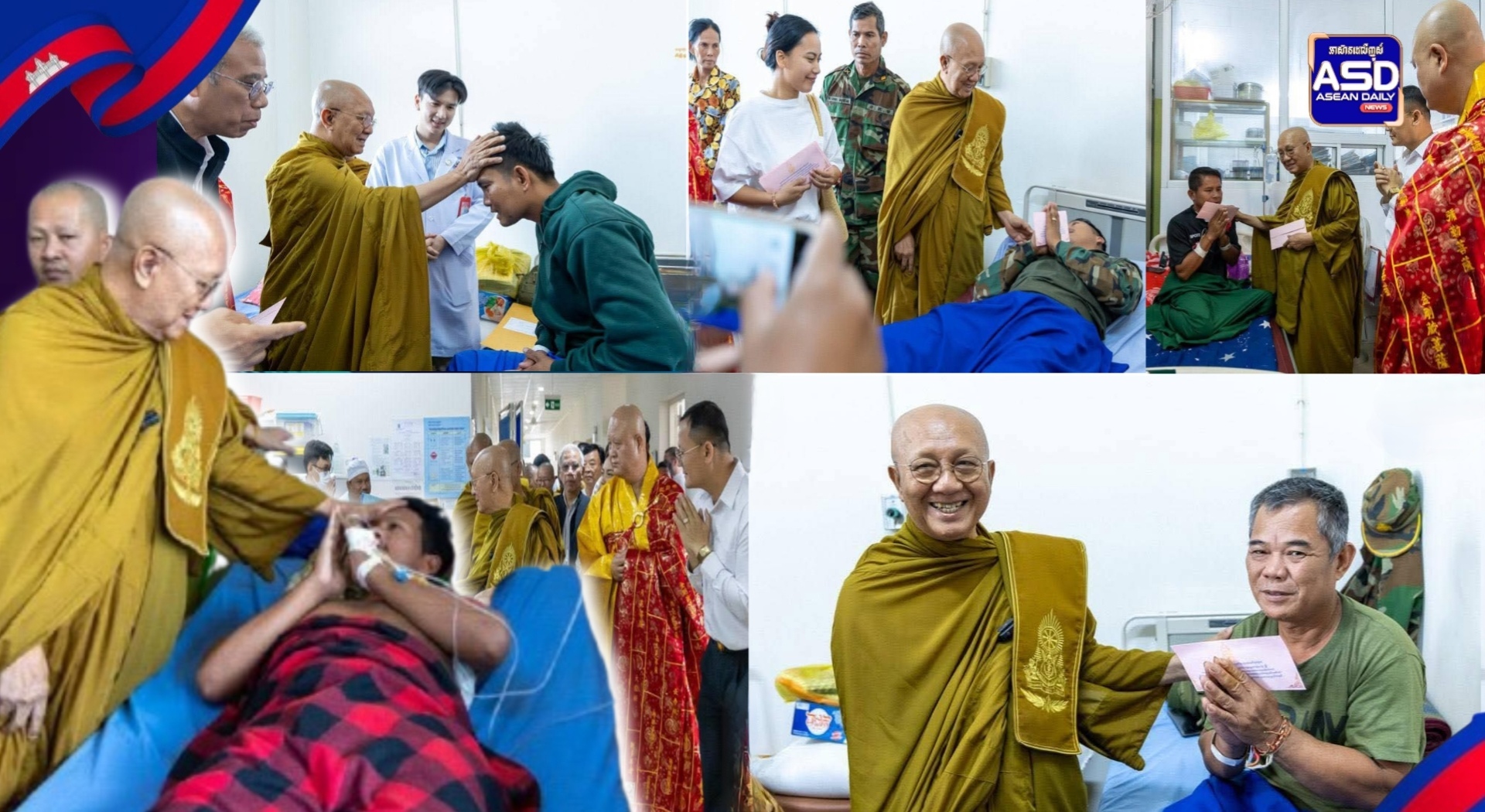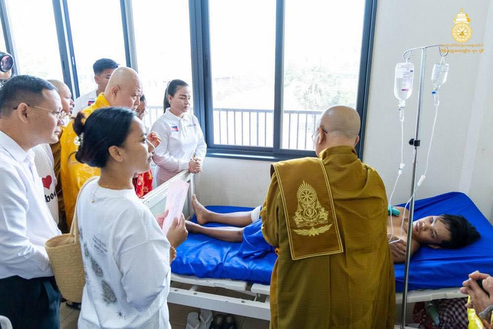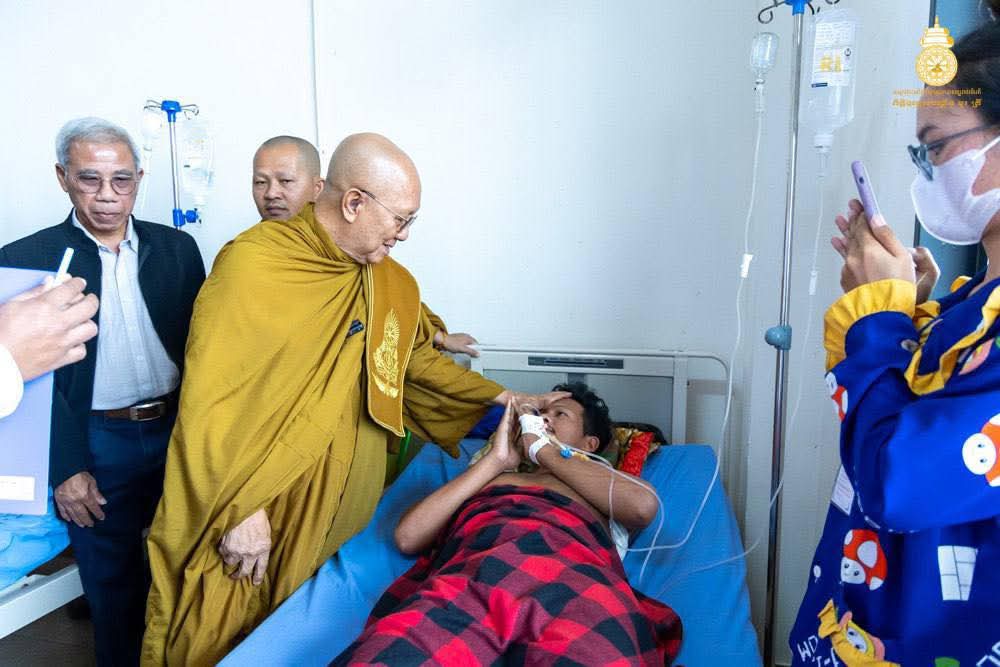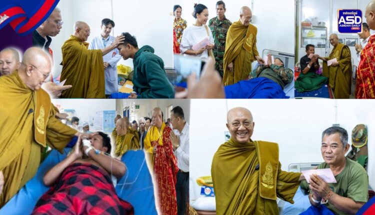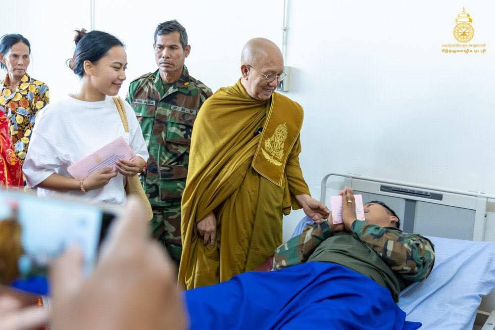 សម្តេចព្រះមហាសង្ឃរាជ បួរ គ្រី យាងសួរសុខទុក្ខវីរៈកងទ័ពរងរបួសសម្រាកព្យាបាលនៅមន្ទីរពេទ្យយោធាភូមិភាគទី៤ ខេត្តសៀមរាប.