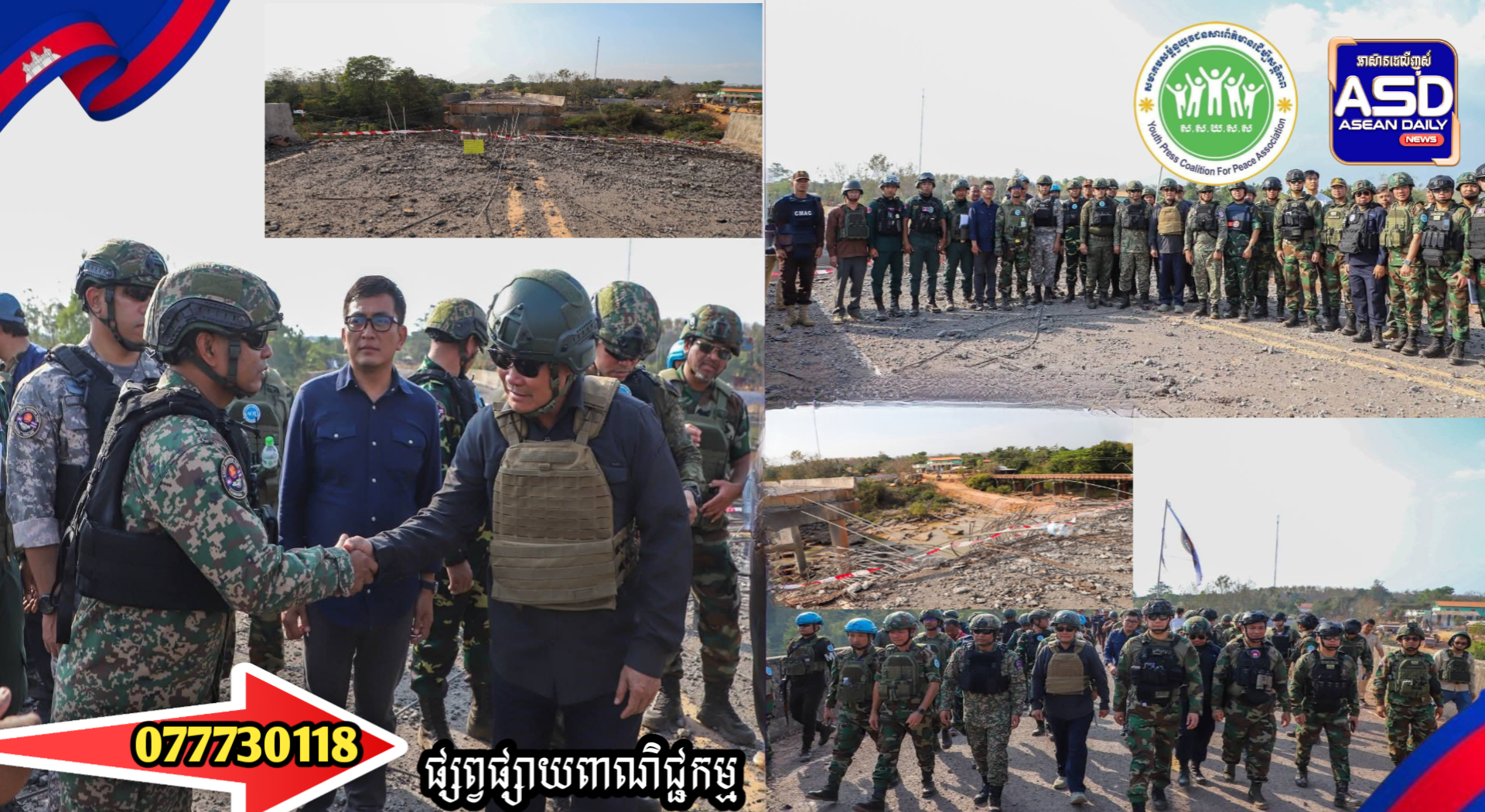 (ខេត្តពោធិ៍សាត់): នៅថ្ងៃព្រហស្បតិ៍ ទី១៥ ខែមករា ឆ្នាំ២០២៦ វេលាម៉ោង១៥:១៦ នាទីរសៀល ក្រុមសម្របសម្រួល (CLG) នៃព្រះរាជាណាចក្រកម្ពុជា បានសម្របសម្រួលជូនដល់ក្រុមអ្នកសង្កេតការណ៍អាស៊ាន (AOT) ចុះសង្កេតការណ៍ ផ្ទៀងផ្ទាត់ និងរាយការណ៍ អំពីស្ថានភាពនៅស្ពានស្ទឹងមេទឹក ខេត្តពោធិ៍សាត់។