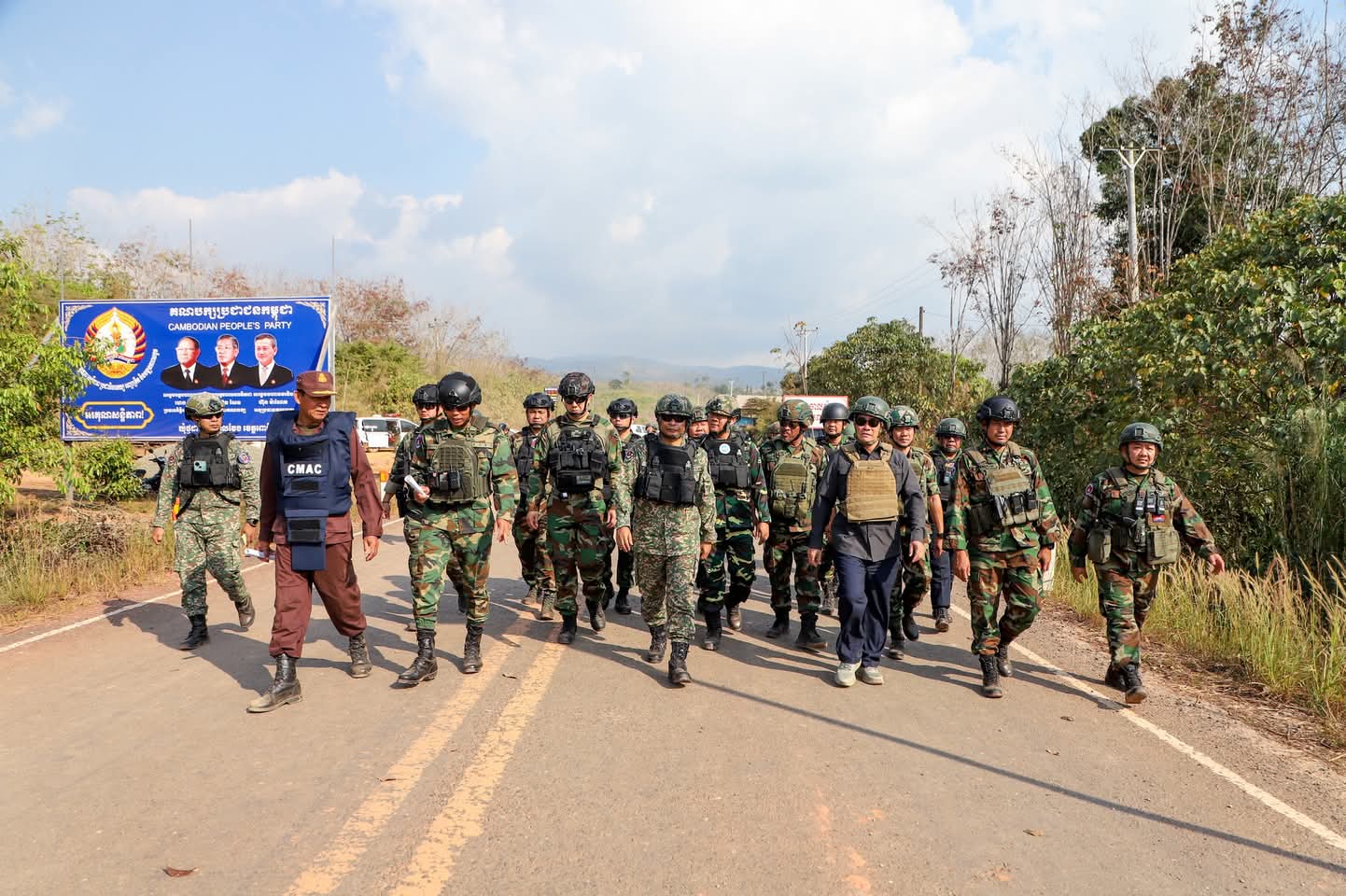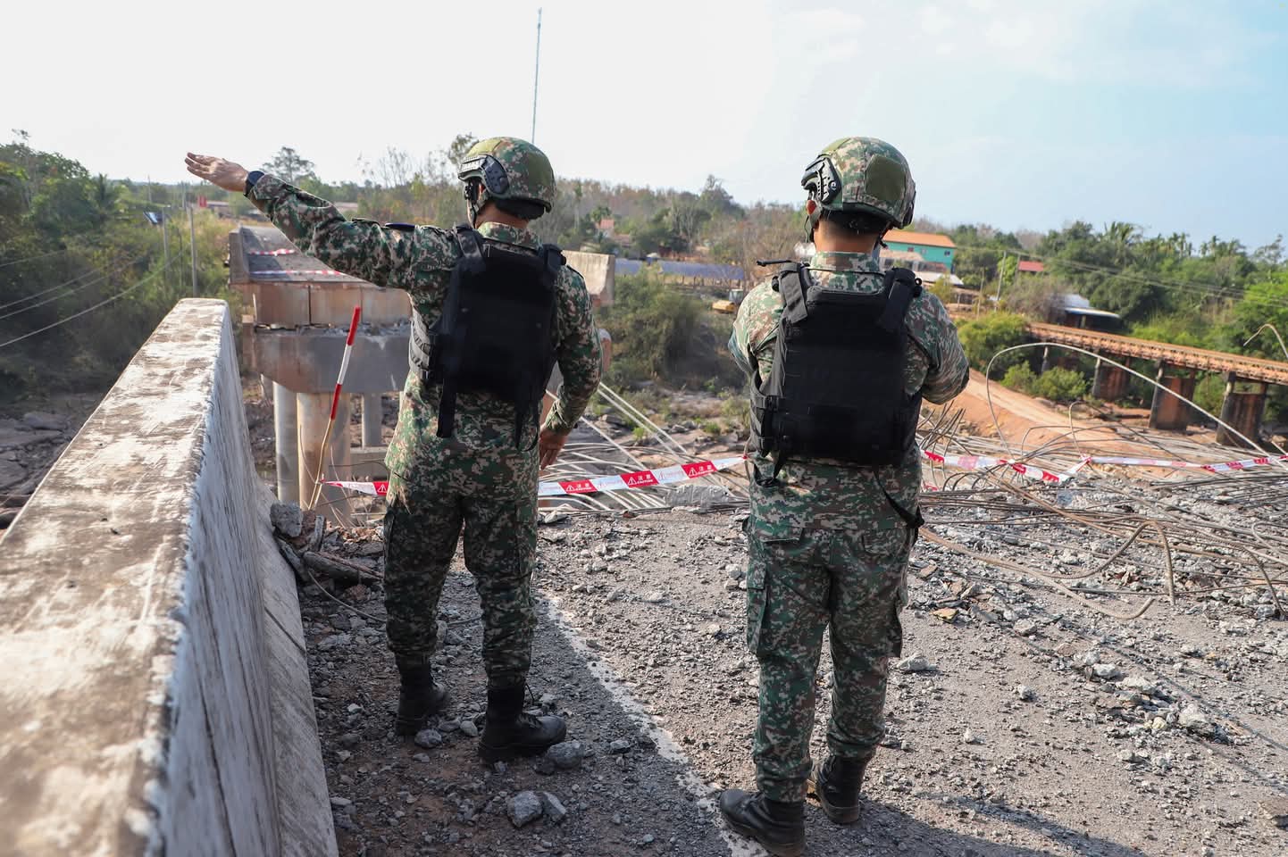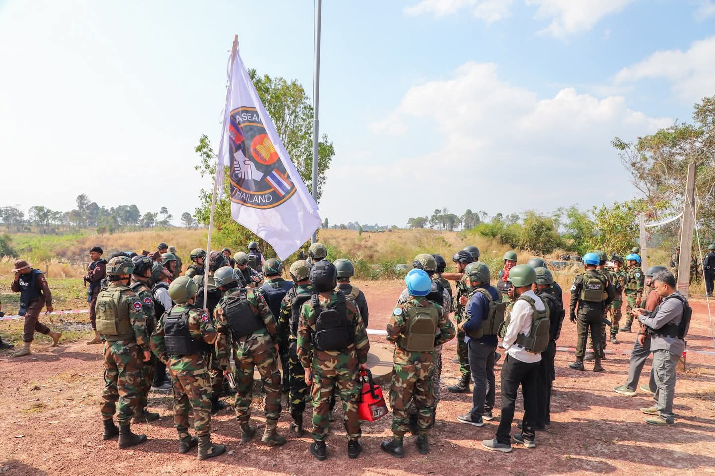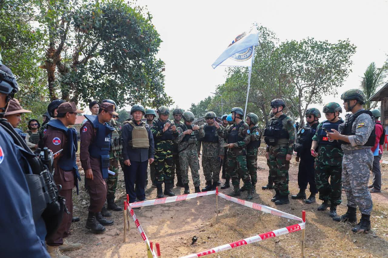 – នៅវេលាម៉ោង១៤:០៥នាទីរសៀល ក្រុមអ្នកសង្កេតការណ៍អាស៊ាន (AOT) ចុះសង្កេតការណ៍ ផ្ទៀងផ្ទាត់ និងរាយការណ៍ អំពីស្ថានភាពព្រំដែននៅតំបន់ច១ ស្ថិតនៅភូមិឯកភាព ឃុំថ្មដា ស្រុកវាលវែង ខេត្តពោធិ៍សាត់ ក្រោយបទឈប់បាញ់ចូលជាធរមាន។