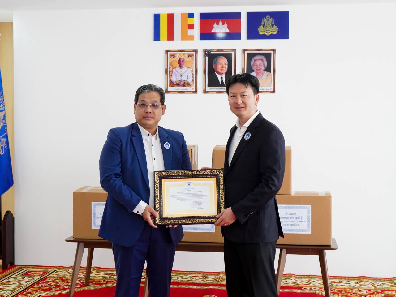 នារសៀលថ្ងៃទី១៦ ខែមករា ឆ្នាំ២០២៦ ឯកឧត្តម សុខ ពុទ្ធិវុធ អនុប្រធានសមាគម តំណាងដ៏ខ្ពង់ខ្ពស់ លោកជំទាវបណ្ឌិត ពេជ ចន្ទមុន្នី ប្រធានសមាគម អ.ម.ត បានអញ្ជើញជាអធិបតីក្នុងពិធីប្រគល់-ទទួលអំណោយសប្បុរសធម៌ រួមមានថ្នាំពេទ្យ សម្ភារបរិក្ខារចាំបាច់ និងថវិកាមួយចំនួន ដែលជាការចូលរួមពីថ្នាក់ដឹកនាំ សមាជិក សមាជិកា នៃក្រុមការងារអាហារូបករណ៍ អ.ម.ត ក្រុមទី១២ សម្រាប់ផ្តល់ជូនវីរយុទ្ធជនជួរមុខ និងប្រជាពលរដ្ឋជាជនភៀសសឹក។ ពីធីនេះ ប្រព្រឹត្តទៅនៅស្នាក់ការសមាគម អ.ម.ត និងមានការអញ្ជើញចូលរួមផងដែរពីសំណាក់ថ្នាក់ដឹកនាំ ក្រុមការងារនៃសមាគមគ្រូពេទ្យស្ម័គ្រចិត្តយុវជនសម្តេចតេជោ (TYDA)។
