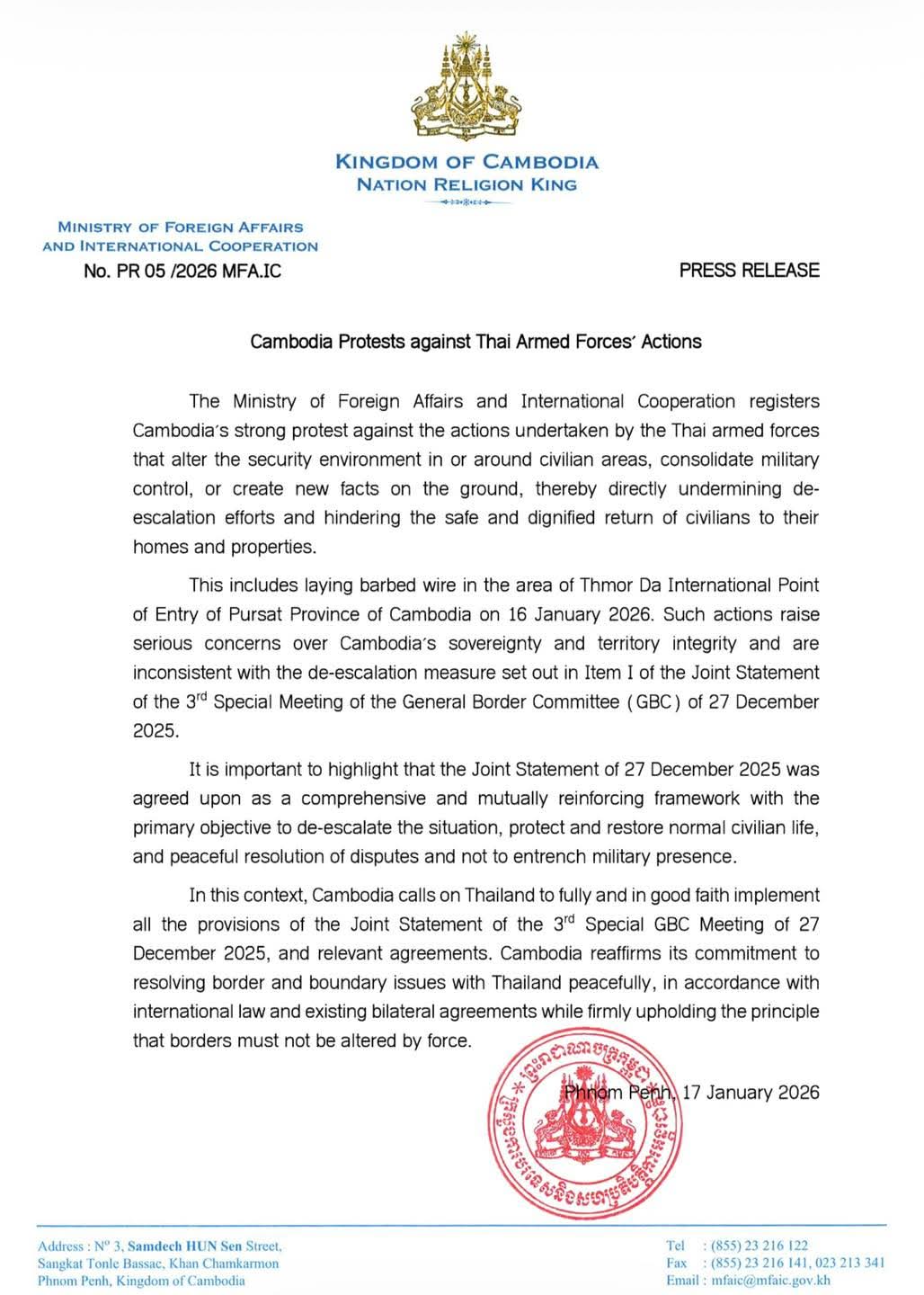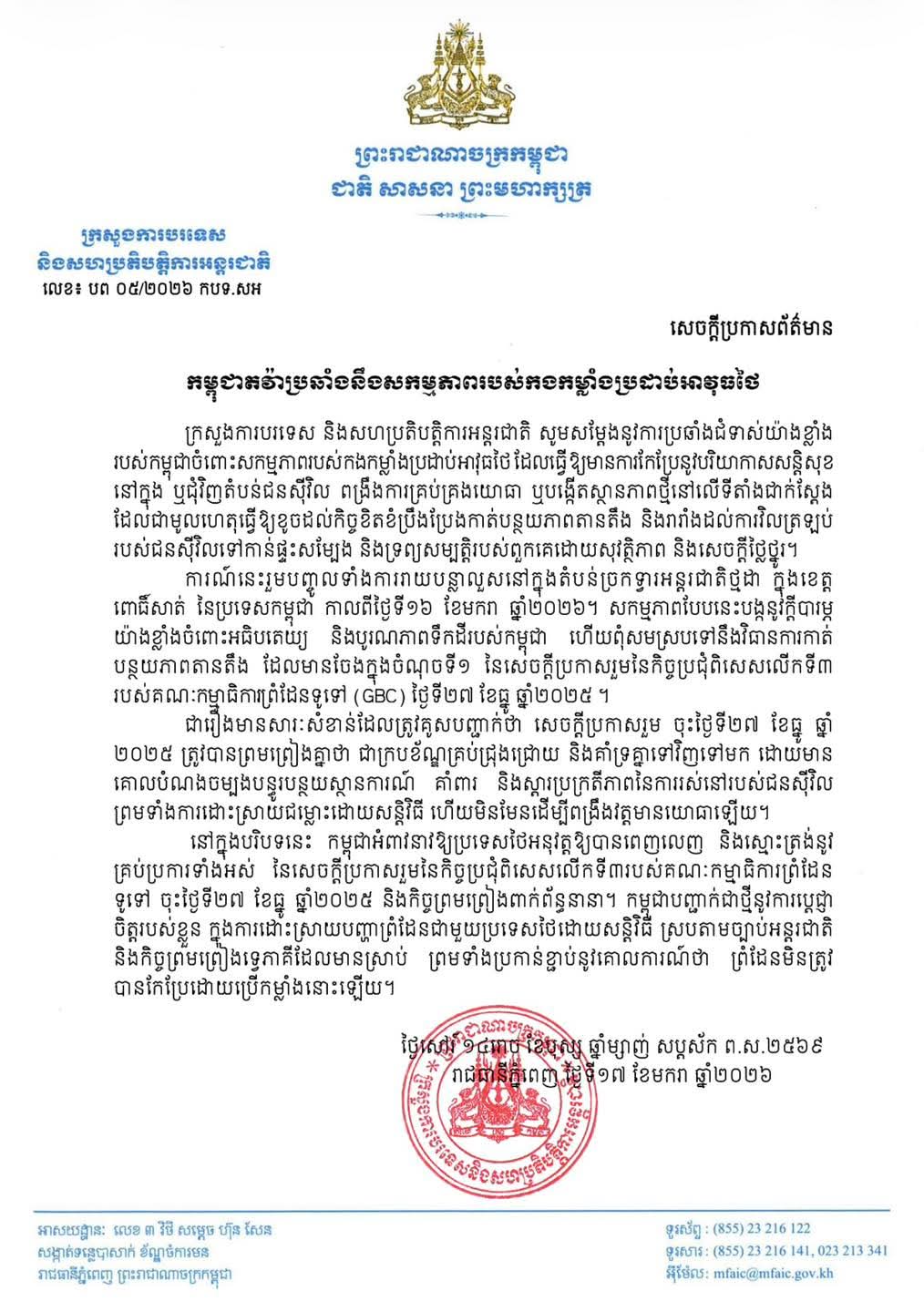 ផ្សាយ​:ថ្ងៃទី​១៧ ខែមករា​ ឆ្នាំ២០២៦