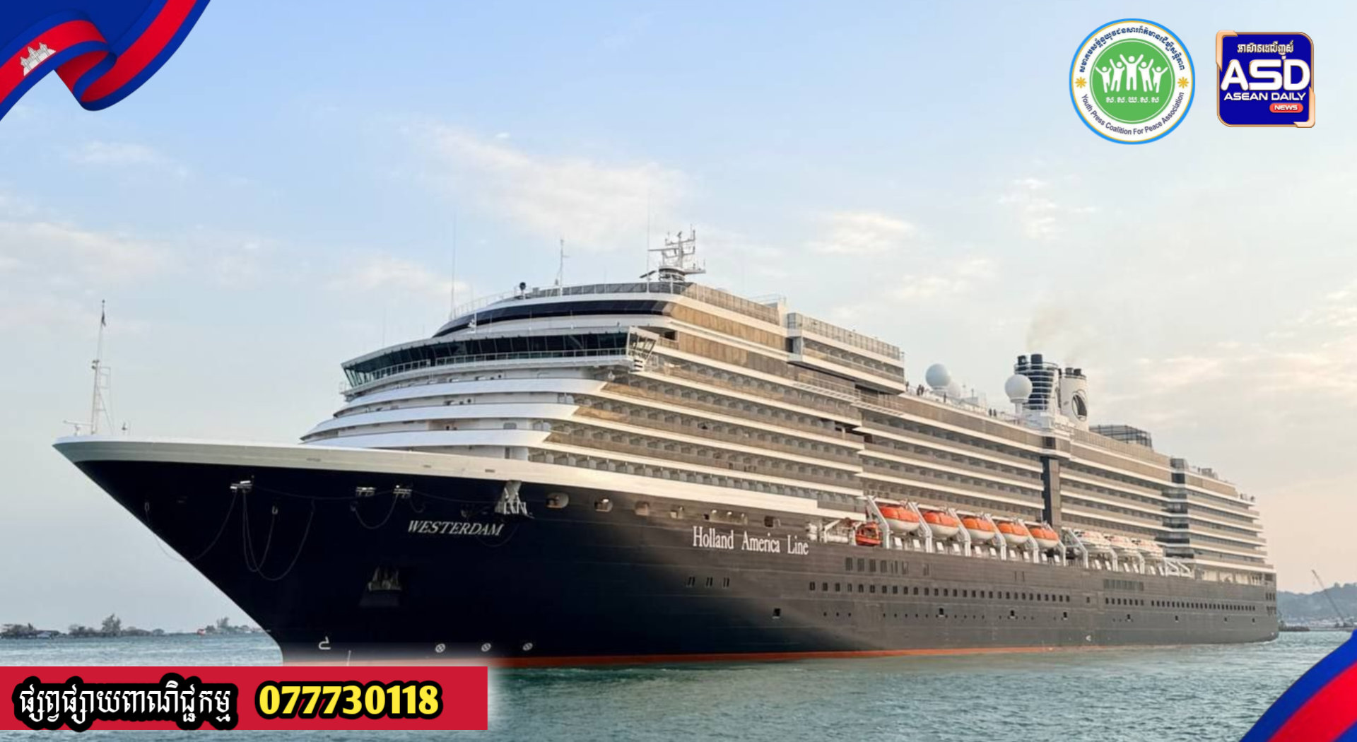 កម្ពុជា​ សូម​ស្វាគមន៍! ការមកដល់របស់នាវា​ទេសចរណ៍​WESTERDAM​ សារជាថ្មីលេី​ទឹកដី​ក្រុងព្រះសីហនុ (Video​ Inside).