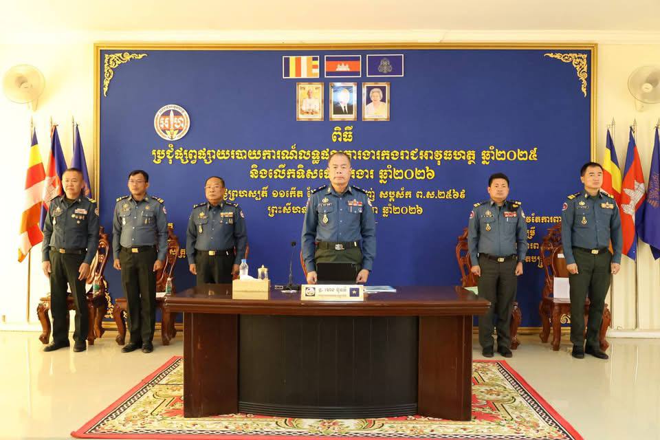 (ខេត្តព្រះសីហនុ): នារសៀល ថ្ងៃទី២៩ ខែមករា ឆ្នាំ២០២៦ នៅបញ្ជាការដ្ឋានកងរាជអាវុធហត្ថខេត្ត លោកឧត្តមសេនីយ៍ត្រី ហេង ប៊ុនទី មេបញ្ជាការ កងរាជអាវុធហត្ថខេត្តព្រះសីហនុ បានអញ្ជើញជាអធិបតីភាពក្នុងពិធីប្រជុំផ្សព្វផ្សាយរបាយការណ៍លទ្ធផលការងារកងរាជអាវុធហត្ថ ឆ្នាំ២០២៥ និងលើកទិសដៅការងារ ឆ្នាំ២០២៦។