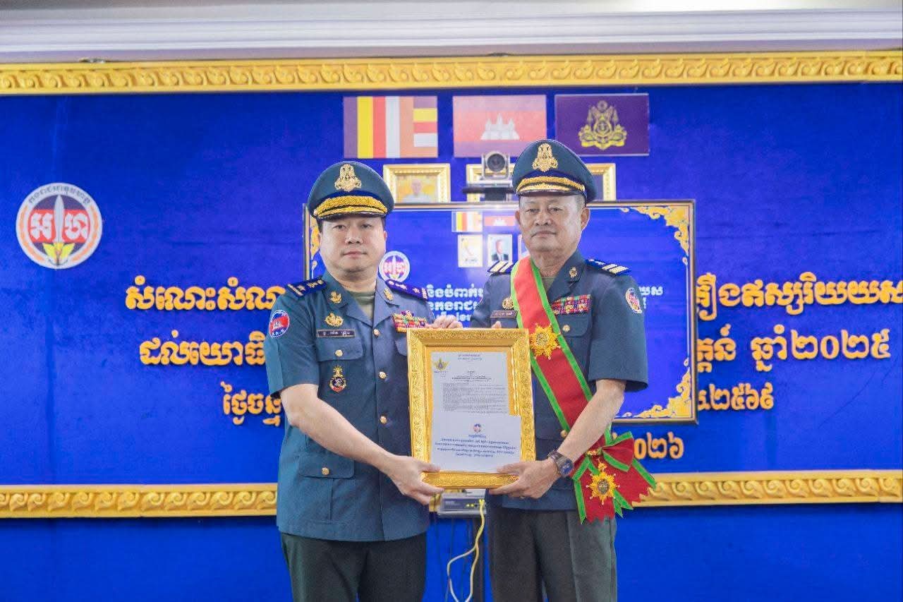(ខេត្តកំពង់ស្ពឺ)៖លោកឧត្តសេនីយ៍ត្រី ម៉េង ស៊្រុន មេបញ្ជាការ កងរាជអាវុធហត្ថខេត្តកំពង់ស្ពឺ នាព្រឹកថ្ងៃទី២ ខែកុម្ភៈ ឆ្នាំ២០២៦ បានអញ្ជើញជាអធិបតីក្នុងពិធីសំណេះសំណាល បំពាក់ឋានន្តរសក្តិ គ្រឿងឥស្សរិយយស ជូនយោធិន នៃកងរាជអាវុធហត្ថខេត្តកំពង់ស្ពឺ សោធននិវត្តន៍ឆ្នាំ២០២៥ ចំនួន៦៣នាក់ ស្ថិតនៅសាលប្រជុំបញ្ជាការដ្ឋានកងរាជអាវុធហត្ថខេត្តកំពង់ស្ពឺ។