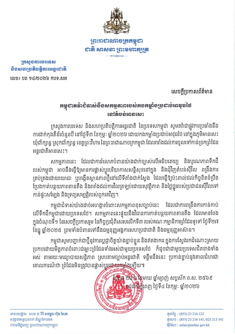 ផ្សាយ:ថ្ងៃទី៥ ខែកុម្ភៈ ឆ្នាំ២០២៦