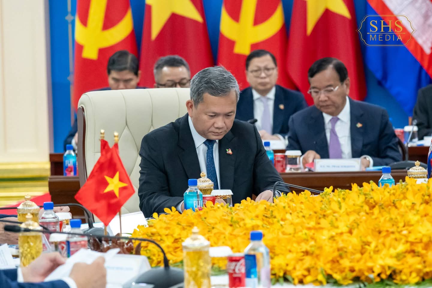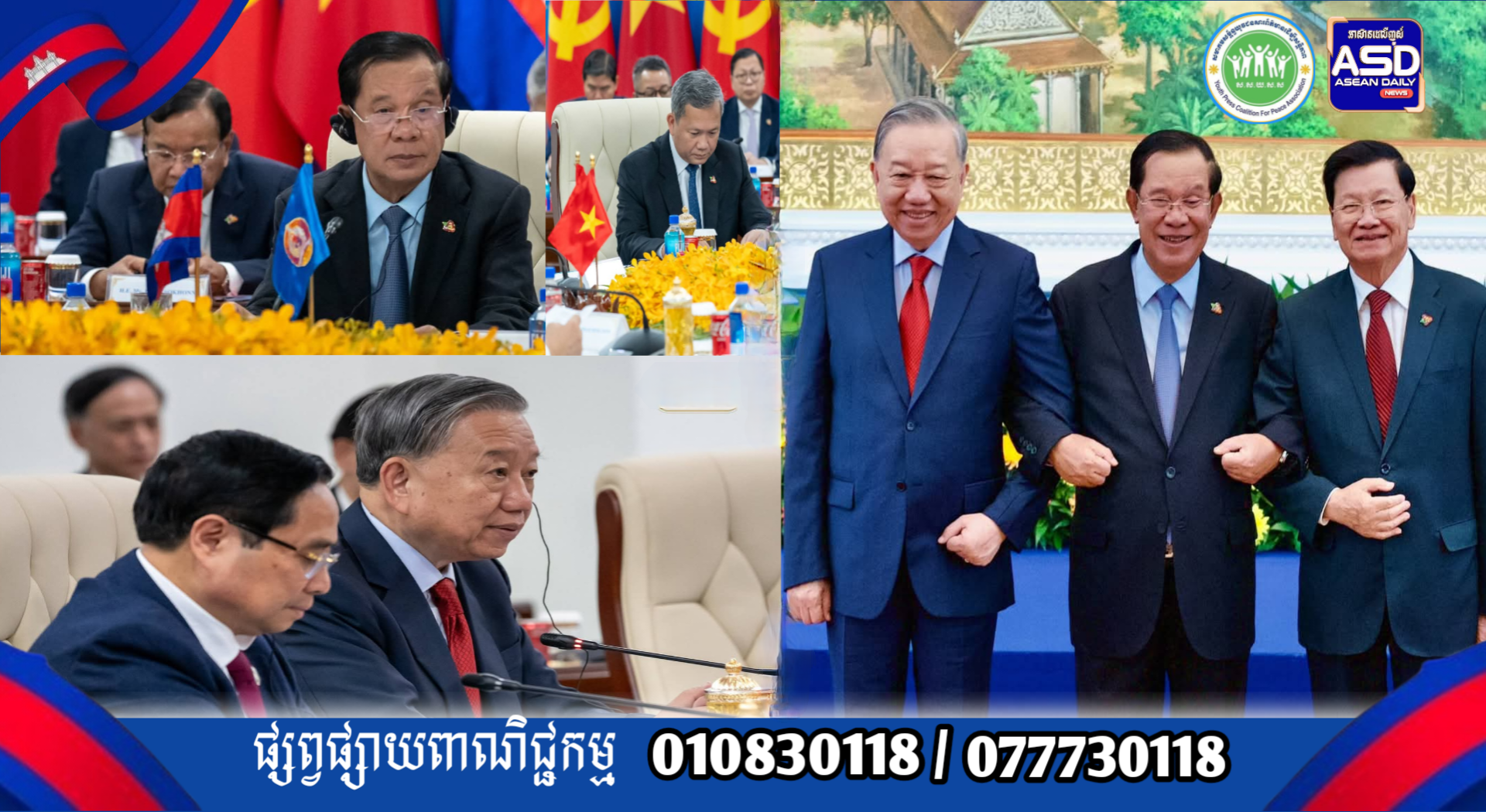 (រាជធានី​ភ្នំពេញ)​:នៅវិមាន៧មករា ថ្ងៃសុក្រ ៤រោច ខែមាឃ ឆ្នាំម្សាញ់ សប្តស័ក ព.ស. ២៥៦៩ ត្រូវនឹង ថ្ងៃទី៦ ខែកុម្ភៈ ឆ្នាំ២០២៦ សម្ដេចអគ្គមហាសេនាបតីតេជោ ហ៊ុន សែន ប្រធានគណបក្សប្រជាជនកម្ពុជា បានអញ្ជើញដឹកនាំកិច្ចប្រជុំកំពូលនៃគណបក្សទាំង៣ កម្ពុជា វៀតណាម និងឡាវ ដោយមានការចូលរួមពីឯកឧត្តម តូ ឡឹម (To Lam) អគ្គលេខាធិការបក្សកុម្មុយនីស្តវៀតណាម និង ឯកឧត្តម ថងលូន ស៊ីសូលីត (Thongloun Sisoulith) អគ្គលេខាធិការបក្សប្រជាជនបដិវត្តន៍ឡាវ។