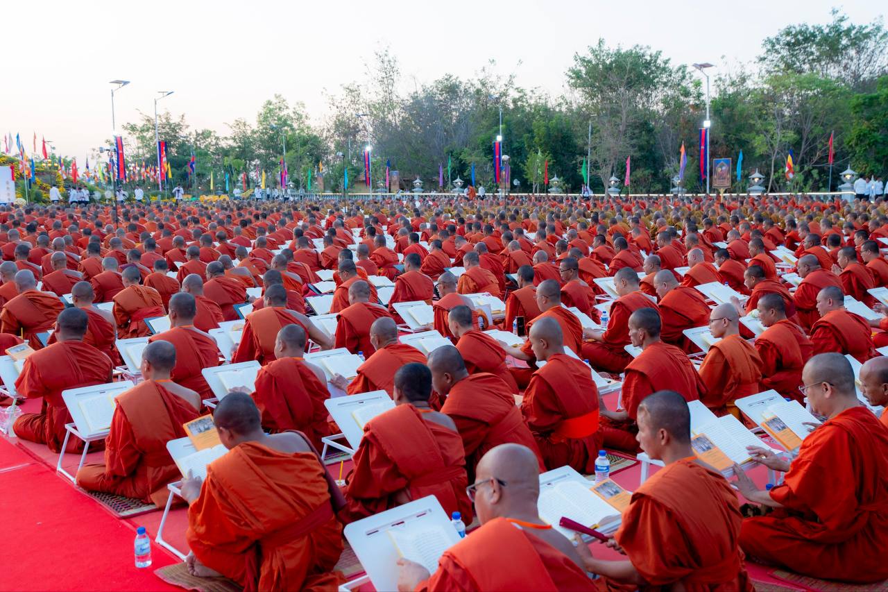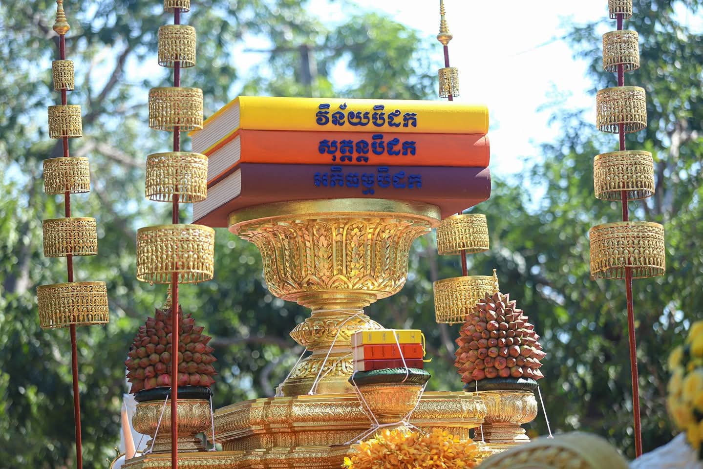 ផ្អែកតាមក្រមរដ្ឋធម្មនុញ្ញនៃព្រះរាជាណាចក្រកម្ពុជា ព្រះពុទ្ធសាសនាគឺជាសាសនារបស់រដ្ឋ។ រាជរដ្ឋាភិបាលកម្ពុជាបានចេញសេចក្តីសម្រេចចំនួន៣ចំណុច ដែលជាការតម្កើងដ៏អស្ចារ្យក្នុងព្រះពុទ្ធសាសនាខ្មែរ។ សេចក្តីសម្រេចជាប្រវត្តិសាស្ត្រទាំង៣ចំណុចនោះរួមមាន (១)ការបង្កើតក្រុមជំនុំព្រះត្រៃបិដកឡើងវិញ ដើម្បីផ្ទៀងផ្ទាត់គម្ពីរក្បួនច្បាប់ពុទ្ធសាសនា និងបកប្រែអដ្ឋកថា ដីកា យោជនា ដែលជាសេចក្តីពន្យល់របស់ព្រះអរហន្តលើគម្ពីរព្រះត្រៃបិដកជាពុទ្ធវចនៈ (២)រៀបចំពិធីសូត្រព្រះត្រៃបិដកខ្មែររៀងរាល់ ៥ឆ្នាំម្តងនៅប្រាសាទអង្គរវត្ត ឬភ្នំព្រះរាជទ្រព្យ (ទីតាំងតម្កល់ព្រះបរមសារីរិកធាតុ) និង (៣)រៀបចំពិធីបុណ្យរំលឹកការបកប្រែគម្ពីរព្រះត្រៃបិដក និងរំលឹកដល់គុណក្រុមជំនុំព្រះត្រៃបិដក។ សេចក្តីសម្រេចរបស់រាជរដ្ឋាភិបាល បានស្តែងឱ្យឃើញច្បាស់នូវការលើកតម្កើងការគោរពប្រណិប័តន៍ព្រះពុទ្ធសាសនា និងនាំឱ្យមានការពេញចិត្តជាខ្លាំង ពីសំណាក់គណៈសង្ឃនាយកទាំងពីរនិកាយនៅកម្ពុជា ក៏ដូចជាប្រជាពុទ្ធបរិស័ទខ្មែរនៅទូទាំងប្រទេស៕
