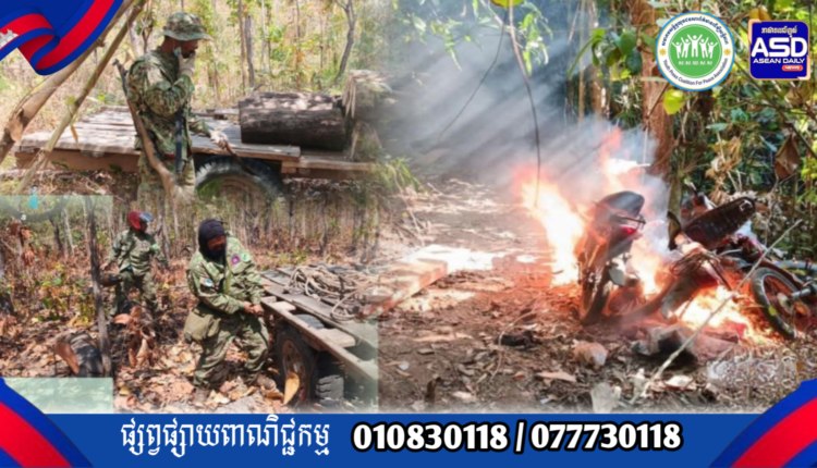បទល្មើស ព្រៃឈើ ក្នុងតំបន់ការពារត្រូវបានកម្ទេច ចោល នៅស្រុកវាលវែង ជួរភ្នំក្រវ៉ាញ.