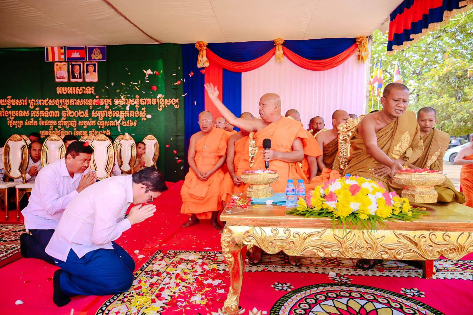 (កំពង់ស្ពឺ): នៅព្រឹកថ្ងៃសុក្រ ៤ កើត ខែផល្គុន ឆ្នាំម្សាញ់ សប្តស័ក ពស ២៥៦៩ ត្រូវនឹងថ្ងៃទី២០ខែកុម្ភៈ ឆ្នាំ២០២៦ បានទទួលការចាត់តាំងពីឯកឧត្តម ចាយ បូរិ ន រដ្ឋមន្ត្រីក្រសួងធម្មការនិងសាសនា ឯកឧត្តម ឈួរ សុ បញ្ញា រដ្ឋលេខាធិការកករសួងធម្មការនិងសាសនាបាន អញ្ជើញចូលរួមជាអធិបតីជាមួយព្រះមុនីសត្ថាចារ្យ កោសល កែវ ចន្ថា ព្រះមេគណខេត្តមហានិកាយ ព្រះ មុនីតាលវ័ន ម្តង ចក្រី ព្រះមេគណខេត្តគណៈធម្មយុត្តិក និកាយក្នុងពិធីផ្សព្វផ្សាយខ្លឹមសារសង្ឃប្រកាសអនុ សំវច្ឆរមហាសន្និបាតមន្ត្រីសង្ឃទូទាំងប្រទេសលើក ទី៣៣ប្រចាំឆ្នាំ២០២៥ និងលើកទិសដៅការងារ ឆ្នាំ២០២៦ សម្រាប់ខេត្តកំពង់ស្ពឺ ដោយមានការនិមន្ត ចូលរួមពីព្រះមន្ត្រីសង្ឃ ព្រះសង្ឃ សមណសិស្ស និង ការអញ្ជើញចូលរួមពីសំណាក់ ឯកឧត្តម លោកជំទាវ លោក លោកស្រី ប្រធាន អនុប្រធានមន្ទីរអង្គភាពជុំវិញ ខេត្ត និងគណៈកម្មការ អាចារ្យ ក្នុងខេត្តកំពង់ស្ពឺ សរុប ប្រមាណជា១,១៨២ អង្គ/នាក់ ដែលរៀបចំឡើងនៅក្នុង បរិវេណវត្ត ដំណាក់ត្រាច ស្ថិតក្នុងឃុំដំបូករូង ស្រុក ភ្នំស្រួច ខេត្តកំពង់ស្ពឺ។