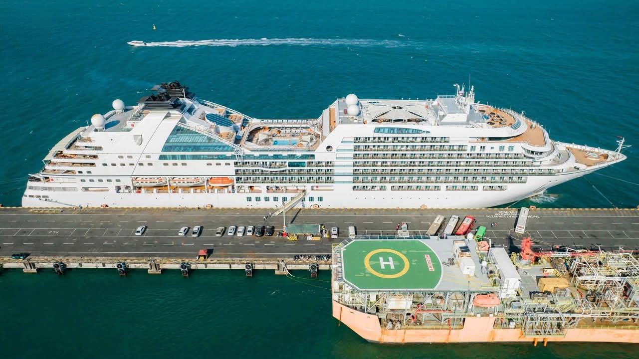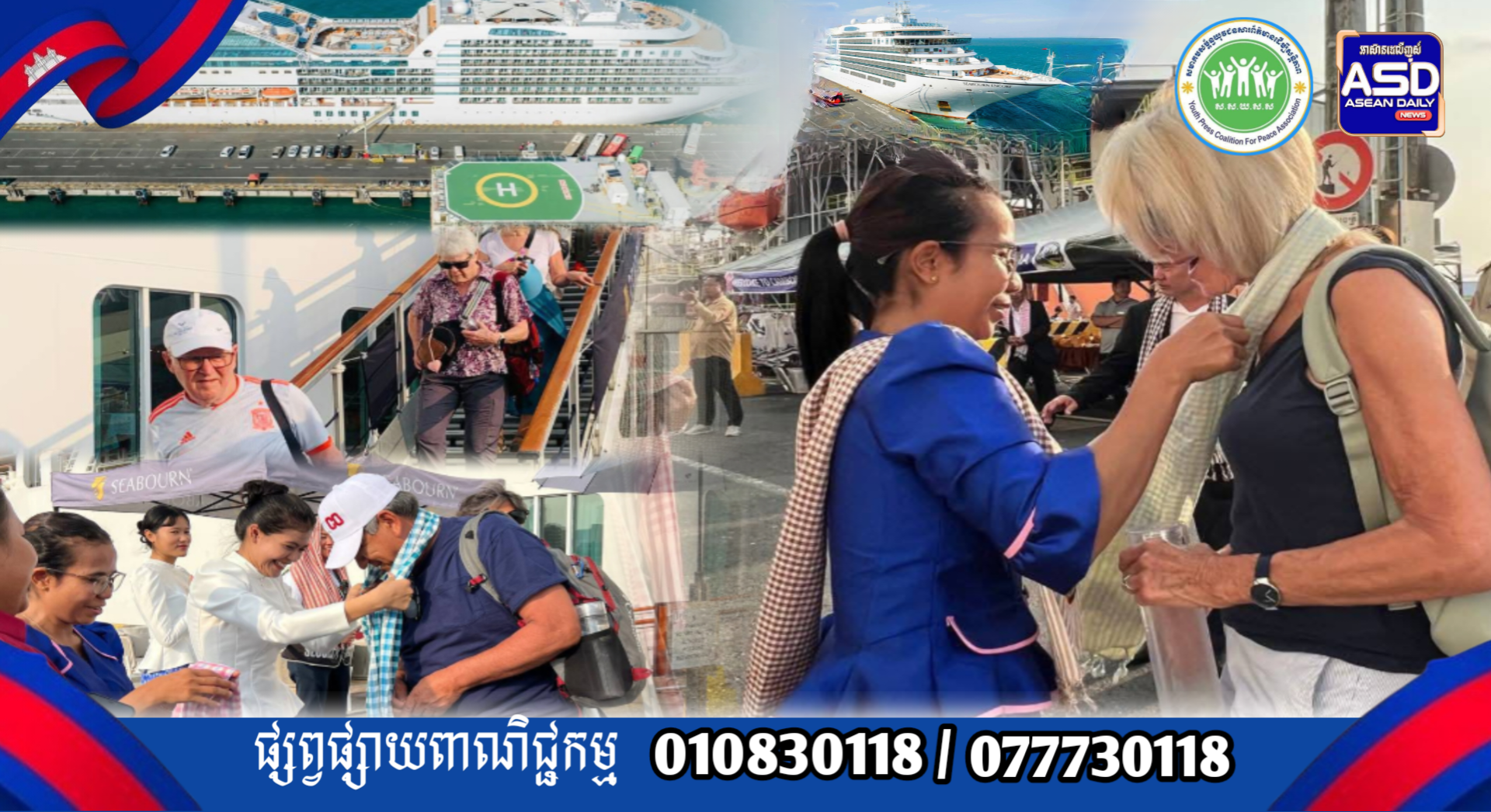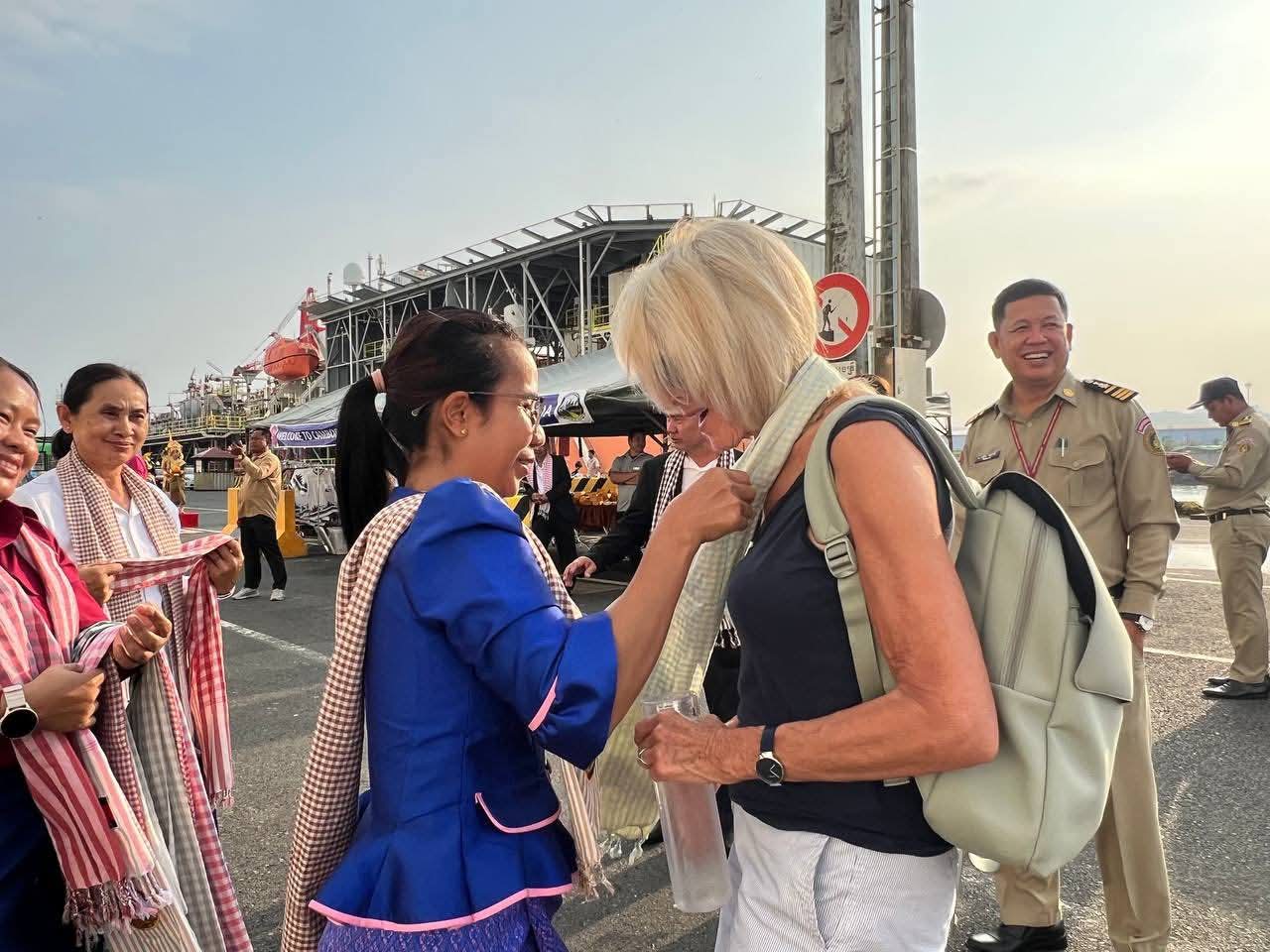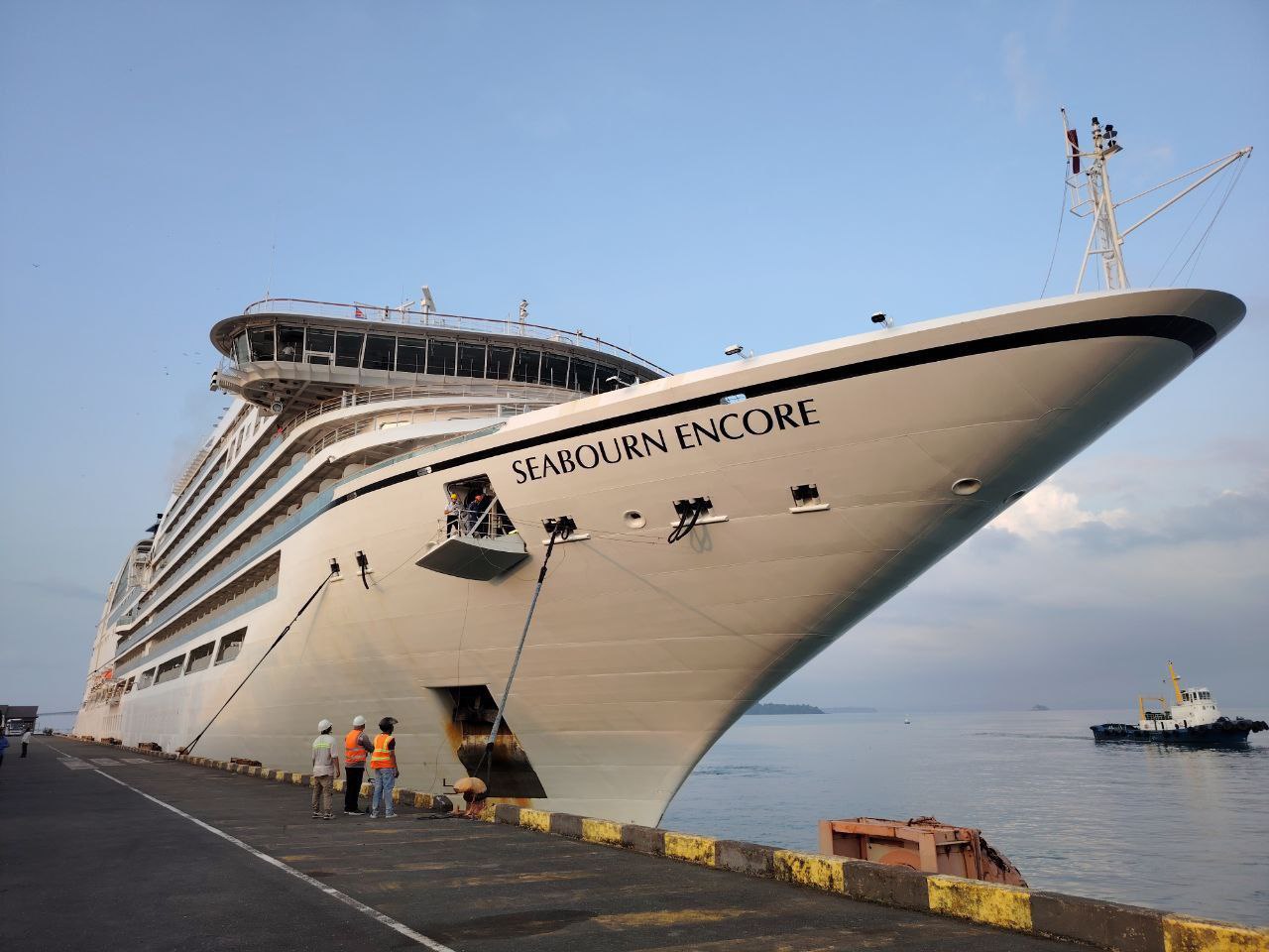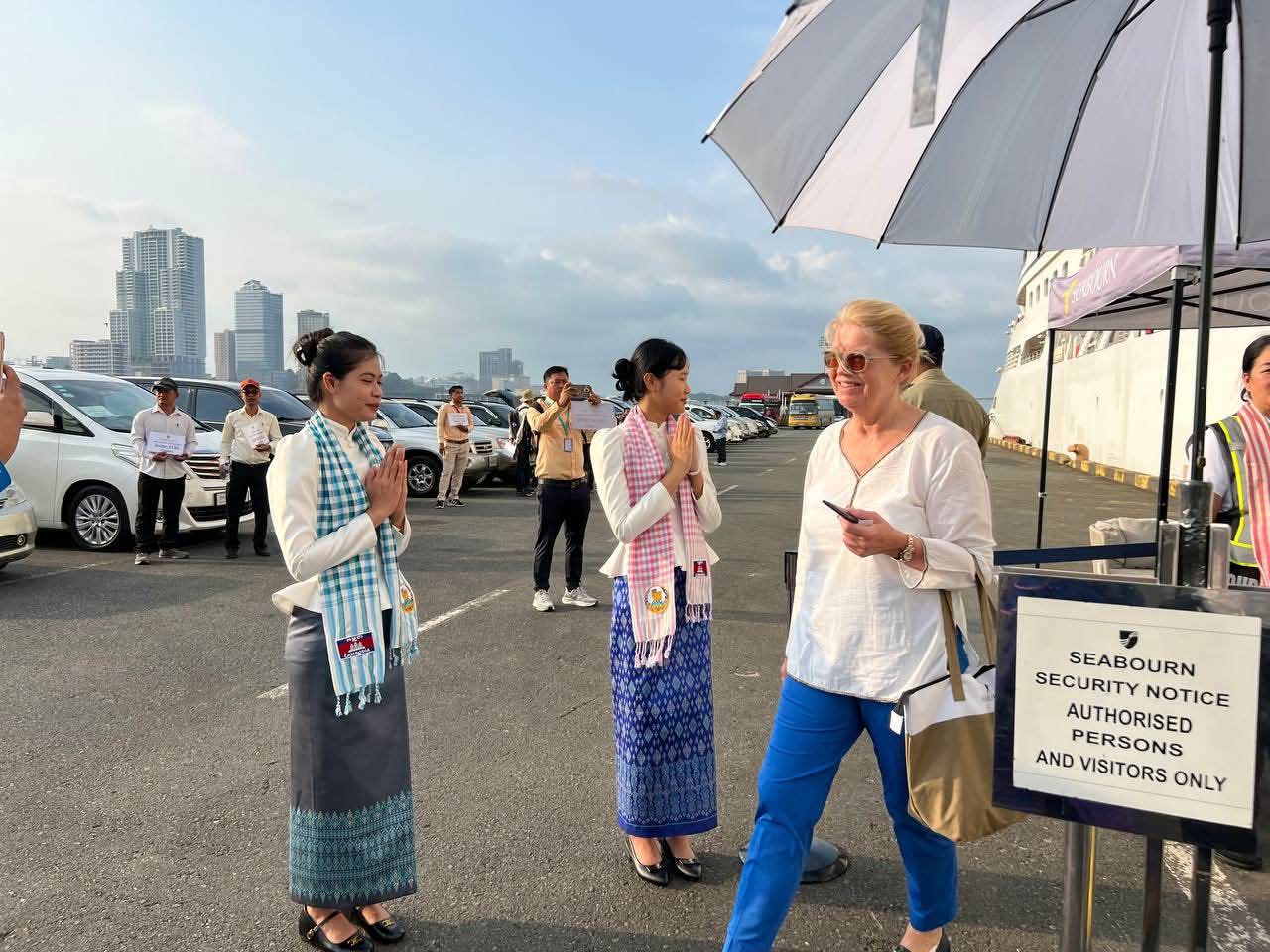 កម្ពុជា​សូម​ស្វាគមន៍! នាវា​ទេសចរណ៍​ខ្នាតយក្សសញ្ជាតិ BAHAMAS,​ SEABOURN ENCORE ចូលចតនៅកំពង់ផែស្វយ័តក្រុងព្រះសីហនុ ដោយ​សុវត្ថិភាព​។