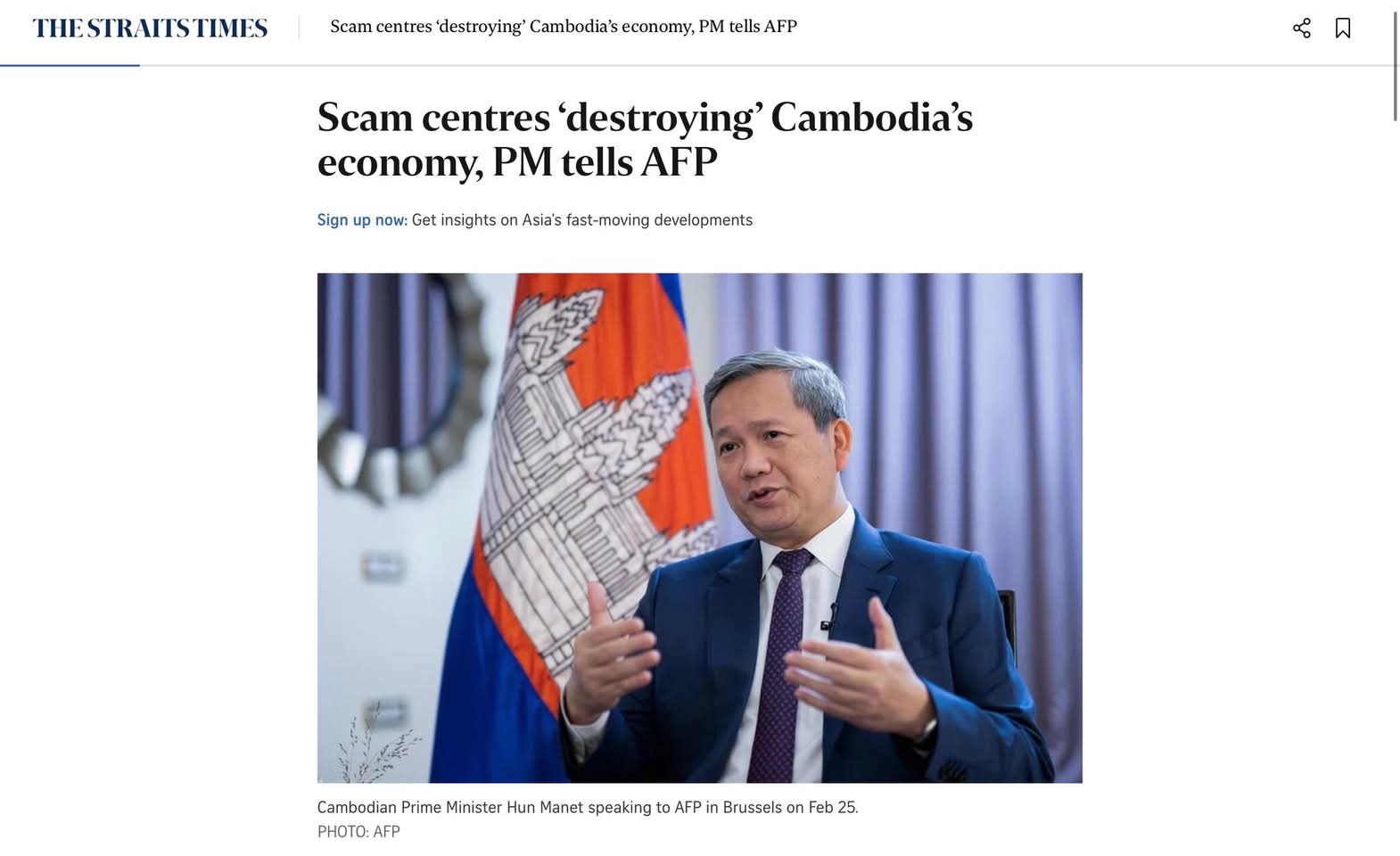 https://www.straitstimes.com/asia/se-asia/scam-centres-destroying-cambodias-economy-pm-tells-afp