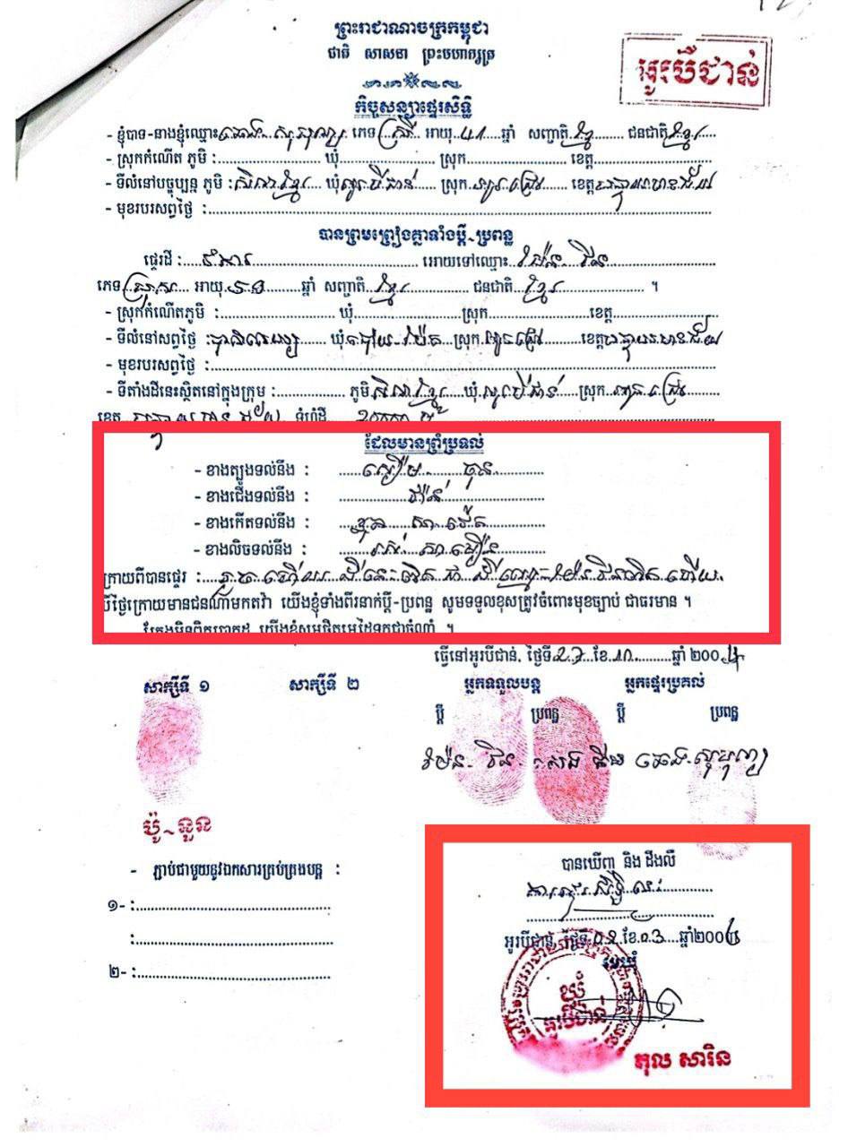 អ្នកស្រី ពៅ វណ្ណា និងប្តីឈ្មោះ តុល សារិន (ជាមេឃុំអូរបីជាន់) ព្រមទាំងបក្ខពួក បានគប់គិតគ្នាជាមួយក្រុមគ្រួសារអ្នកស្រី សេង គឹម បង្កើតលិខិតបញ្ជាក់ប្រវត្តិដីក្លែង ឬ ឯកសារក្លែង ដែលមានចុះហត្ថលេខាដោយលោក តុល សារិន ជាមេឃុំអូរបីជាន់ផ្ទាល់ ព្រមទាំងចុះហត្តលេខា នៅលើលិខិតផ្ទេរសិទ្ធិអំឡុងឆ្នាំ ២0១៨-២០១៩-២០២០