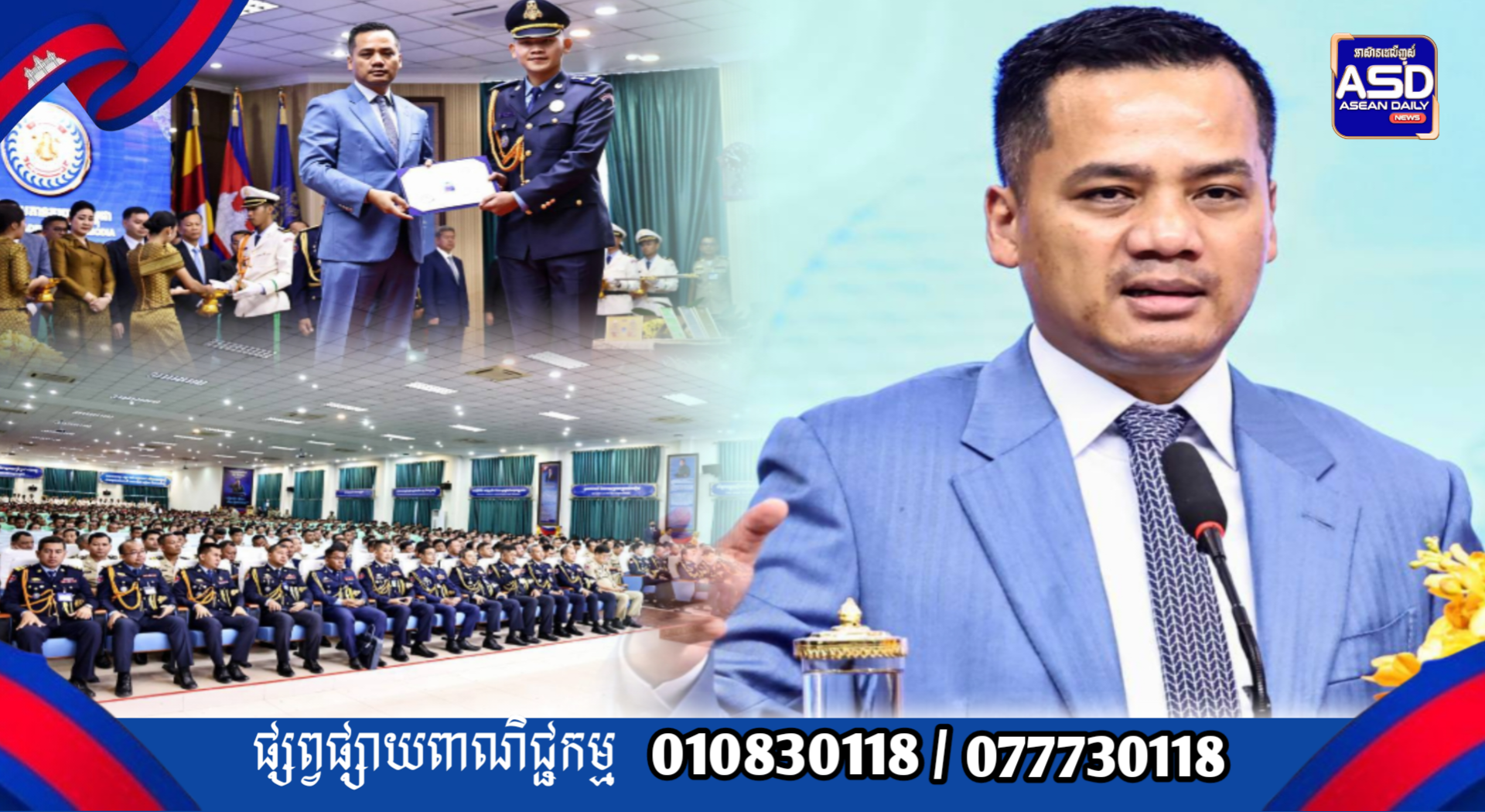 (ខេត្តកណ្តាល)៖ ឯកឧត្តមអភិសន្តិបណ្ឌិត ស សុខា ឧបនាយករដ្ឋមន្ត្រី រដ្ឋមន្ត្រីក្រសួងមហាផ្ទៃ បានណែនាំ និស្សិតដែលទទួលបានជ័យលាភី បញ្ចប់ការសិក្សាវគ្គ ជំនាញនគរបាលទាំងអស់ សូមយកចំណេះដឹង ជំនាញរបស់ខ្លួន ពិសេសក្រមសីលធម៌ ទៅបម្រើ ពលរដ្ឋតាមមូលដ្ឋានរៀងៗខ្លួន សូមប្រកបដោយ ប្រសិទ្ធភាព គុណភាព ប្រសិទ្ធភាពលើការបម្រើ និងរកសេចក្តីសុខជូនពលរដ្ឋឲ្យបានល្អប្រសើរបំផុត។ លើសនេះការប្រើប្រាស់ពាក្យសំដីត្រូវប្រយ័ត្ន ព្រោះសំដីខុស ឆ្គងអាចត្រូវបានមហាជនវាយតម្លៃមិនល្អមកលើ នគរបាល។