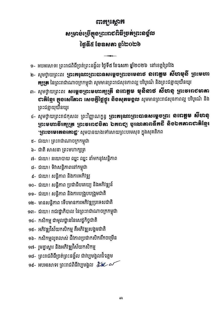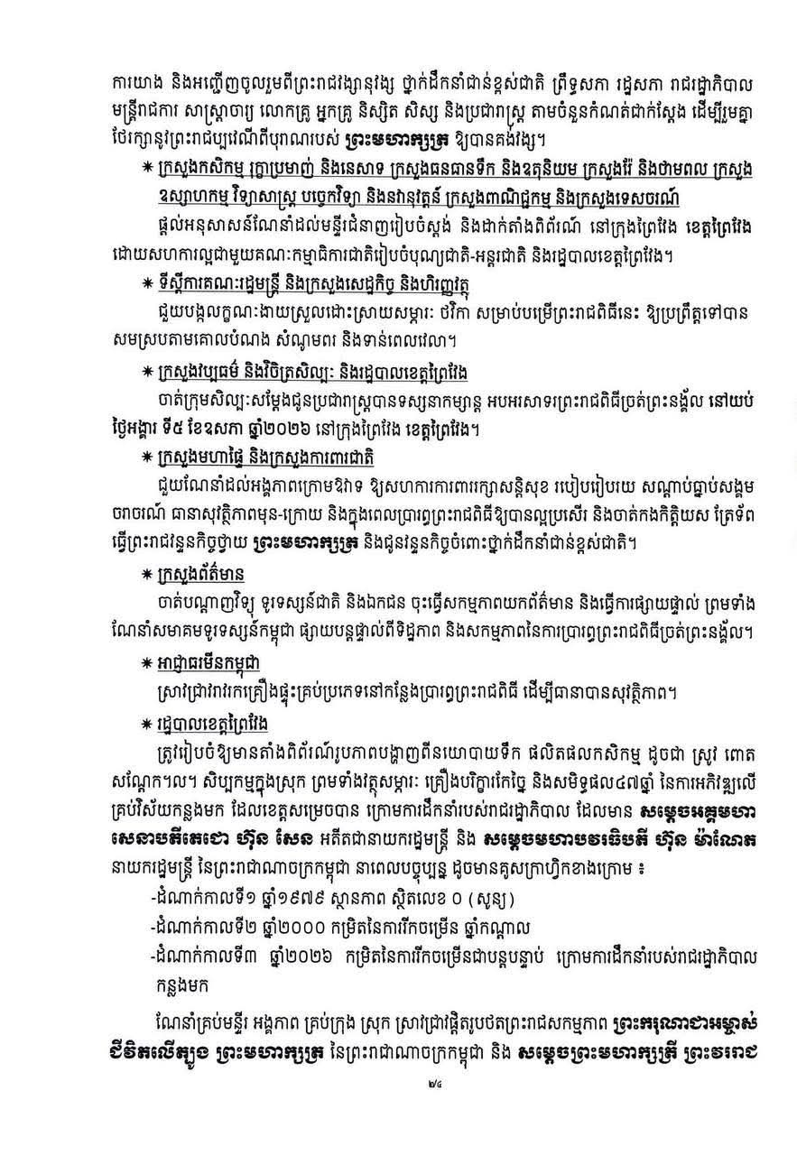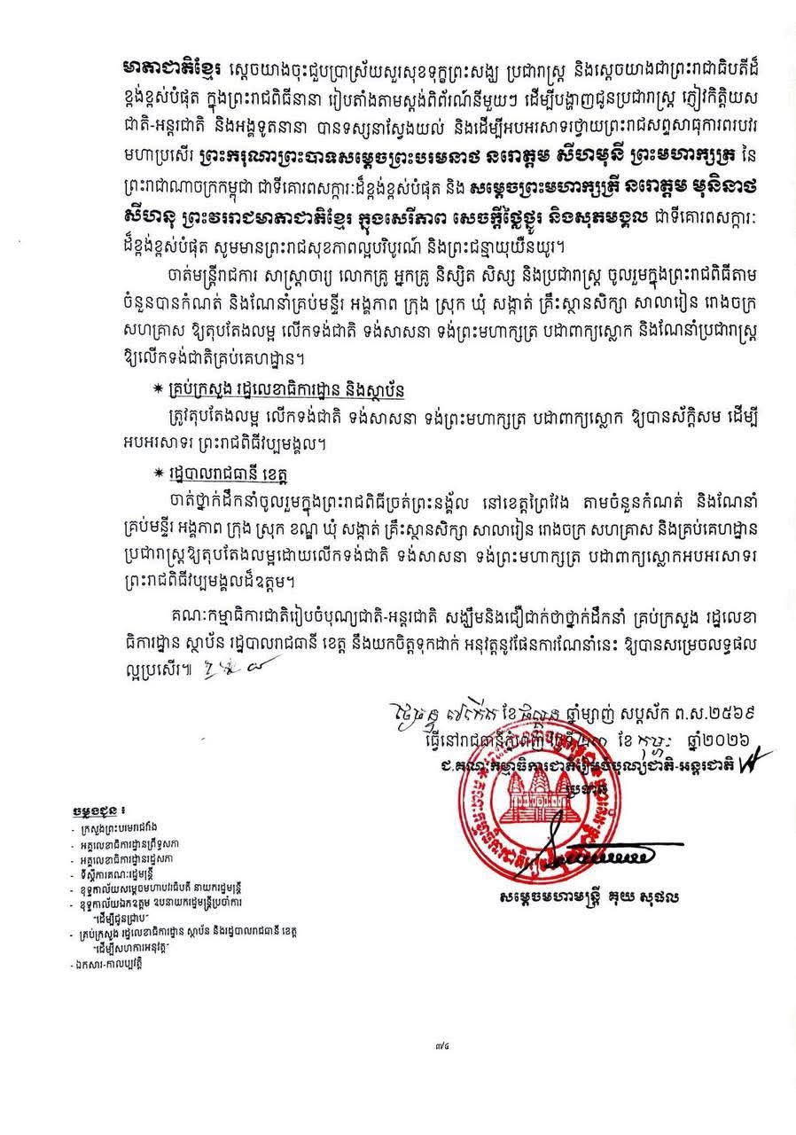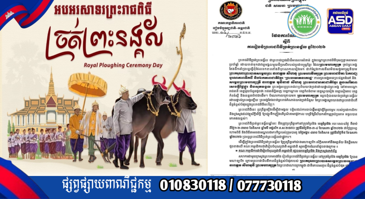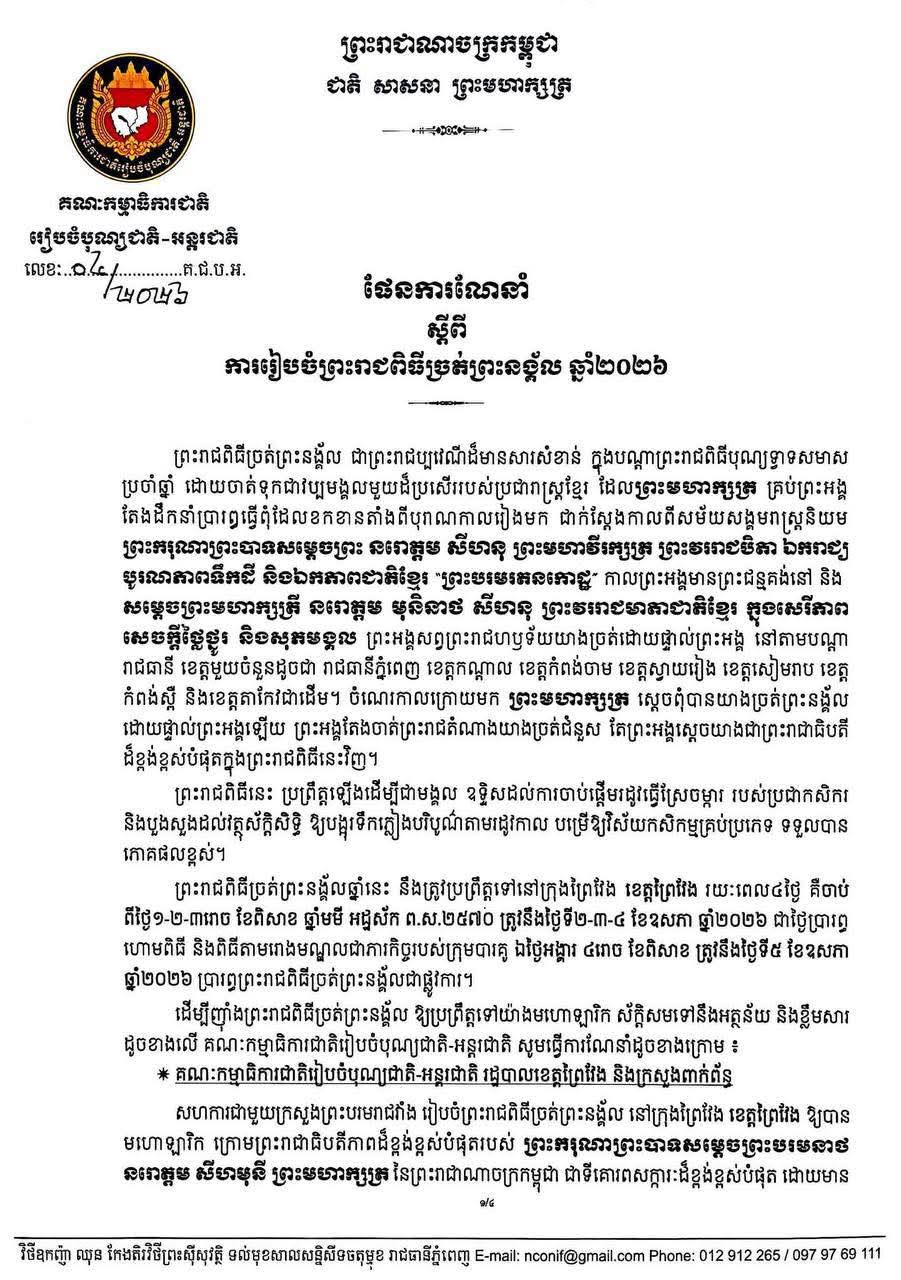 គណៈកម្មាការជាតិ រៀបចំបុណ្យជាតិ-អន្តរជាតិ ចេញផែនការណែនាំ ស្ដីពីការរៀបចំព្រះរាជពិធីច្រត់ព្រះនង្គ័ល ឆ្នាំ២០២៦.