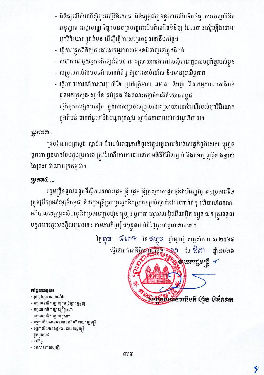 រាជរដ្ឋាភិបាលកម្ពុជា ចេញសេចក្ដីសម្រេច ស្តីពីការបង្កើតរដ្ឋបាលតំបន់សេដ្ឋកិច្ចពិសេស ហ្គ្រេន បូកគោ.