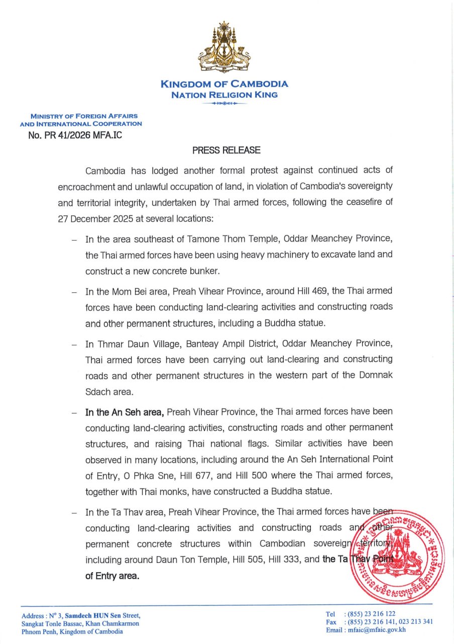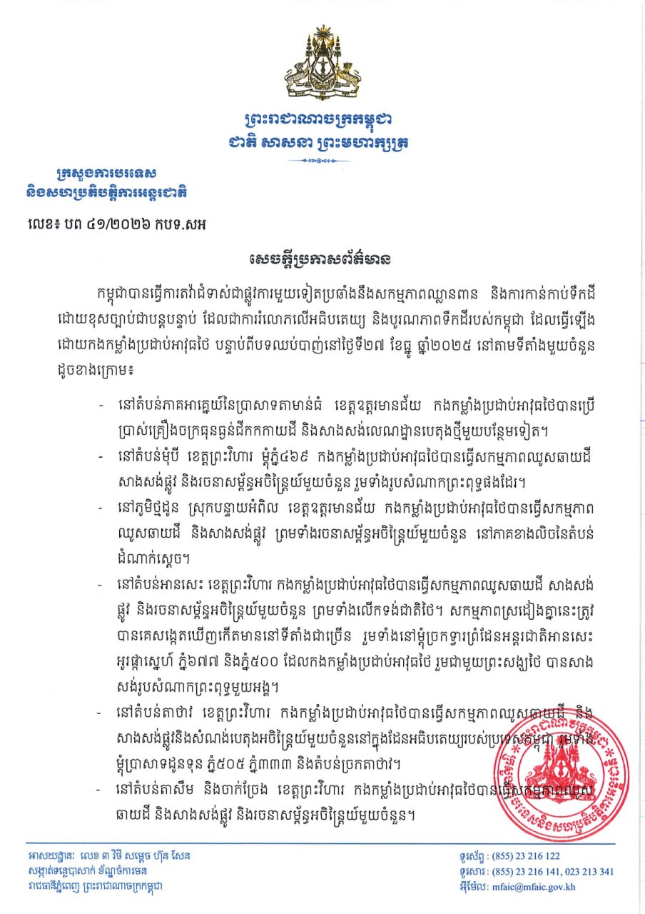 សេចក្តីប្រកាសព័ត៌មាន របស់ក្រសួងការបរទេស និង សហប្រតិបត្តិការអន្តរជាតិ Press Release of the Ministry of Foreign Affairs and International Cooperation