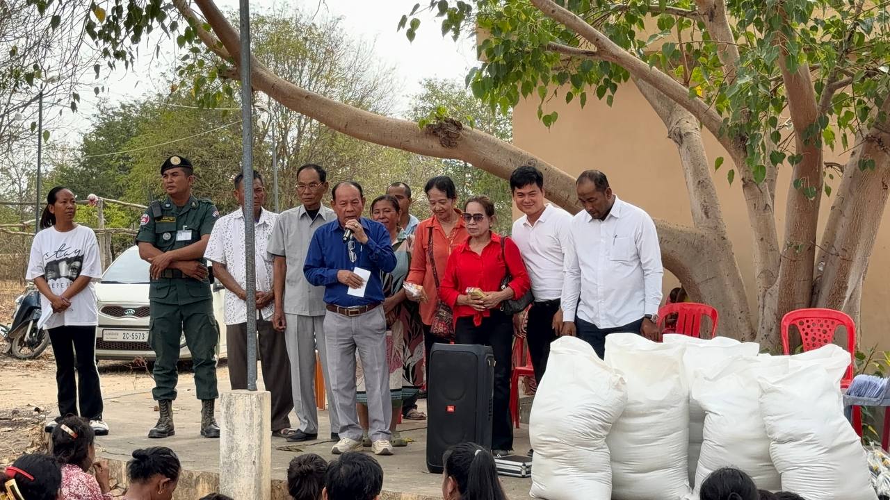 Brought the charitable gifts of  His Excellency Puk Riththa, Advisor to His Excellency Dr. Sar Sokha and Head of the Department of Public Information and Transport of Battambang Province, as well as Madam Vong Chiva Puk Riththa and His Excellency Ut Khloeng, Head of the Battambang Provincial Water Supply Authority, as well as charitable donors Um Srey Sarthiang and Um Srey Sarthin Kampong living in the United States, to the grandparents of 70 families in need in Chhakkarka Village, Doun Ba Commune , Kas Kral District , Battambang Province.