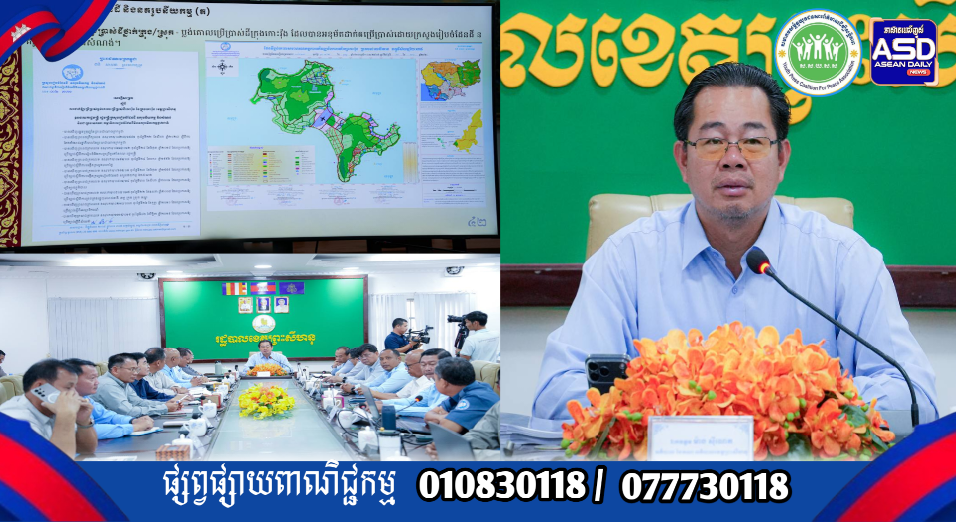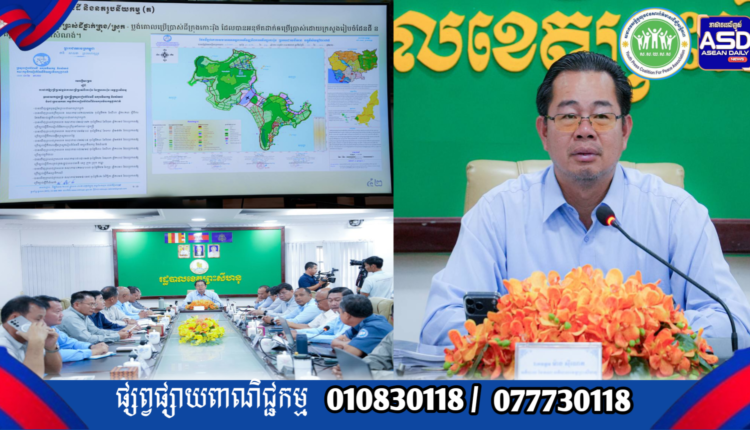 (ខេត្តព្រះសីហនុ)​៖ នាព្រឹកថ្ងៃទី២៣ ខែមីនា ឆ្នាំ២០២៦ ឯកឧត្តម ម៉ាង ស៊ីណេត អភិបាល នៃគណៈអភិបាលខេត្តព្រះសីហនុ បានអញ្ជើញដឹកនាំកិច្ចប្រជុំពិនិត្យ និង អនុម័តប្លង់ប្រើប្រាស់ដីនៅសង្កាត់លេខ៣ សង្កាត់លេខ៤ នៃក្រុងព្រះសីហនុ និង សង្កាត់អូរជ្រៅ នៃក្រុងកំពង់សោម ខេត្ត ព្រះសីហនុ។