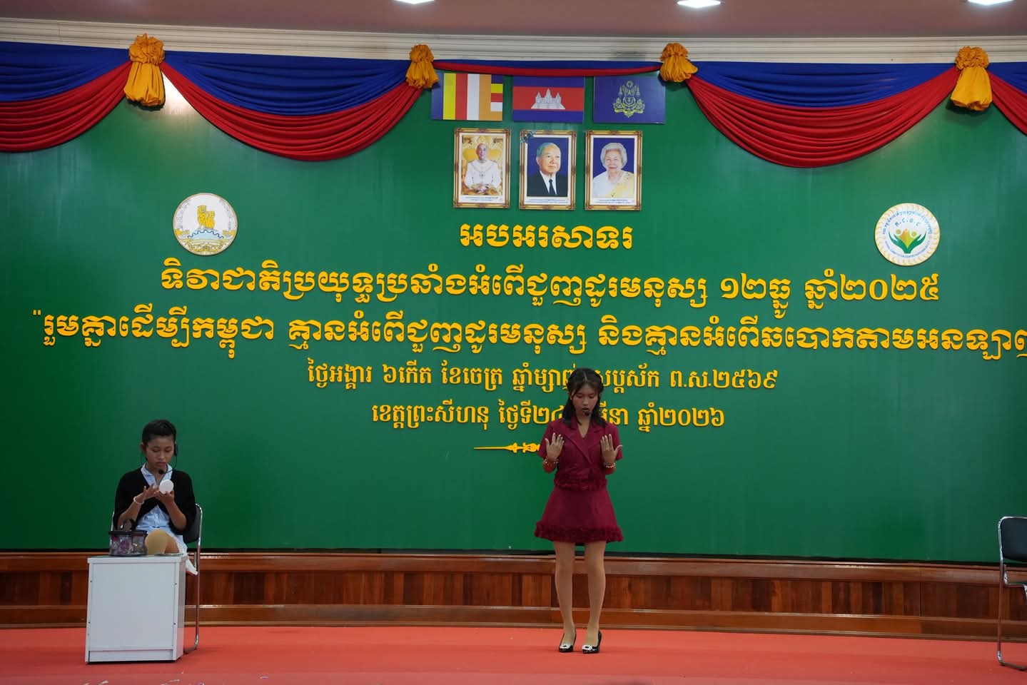 (ខេត្តព្រះសីហនុ)៖ នៅព្រឹកថ្ងៃអង្គារ ទី២៤ ខែមីនា ឆ្នាំ២០២៦ រដ្ឋបាលខេត្ត ព្រះសីហនុ បានរៀបចំពិធីអបអរសាទរ “ទិវាជាតិប្រឆាំងការជួញដូរមនុស្ស ១២ ធ្នូ ឆ្នាំ២០២៥” ក្រោមប្រធានបទ «រួមគ្នាដើម្បី គ្មានអំពើជួញដូរមនុស្ស និងអំពើឆបោក តាមអនឡាញ»។ ពិធីនេះប្រព្រឹត្តទៅនៅ មជ្ឈមណ្ឌលសេដ្ឋាច័ន្ទ ក្រុងព្រះសីហនុ ក្រោមអធិបតីភាព ឯកឧត្តម វង្ស ផាណាត ប្រធានក្រុមប្រឹក្សាខេត្ត និង ឯកឧត្តម ម៉ាង ស៊ីណេត អភិបាលនៃគណៈអភិបាលខេត្ត ព្រះសីហនុ​។