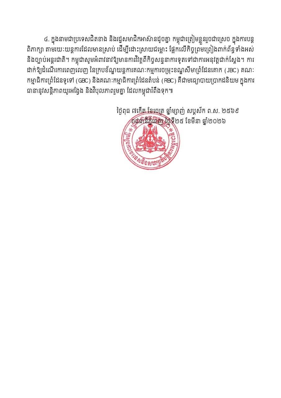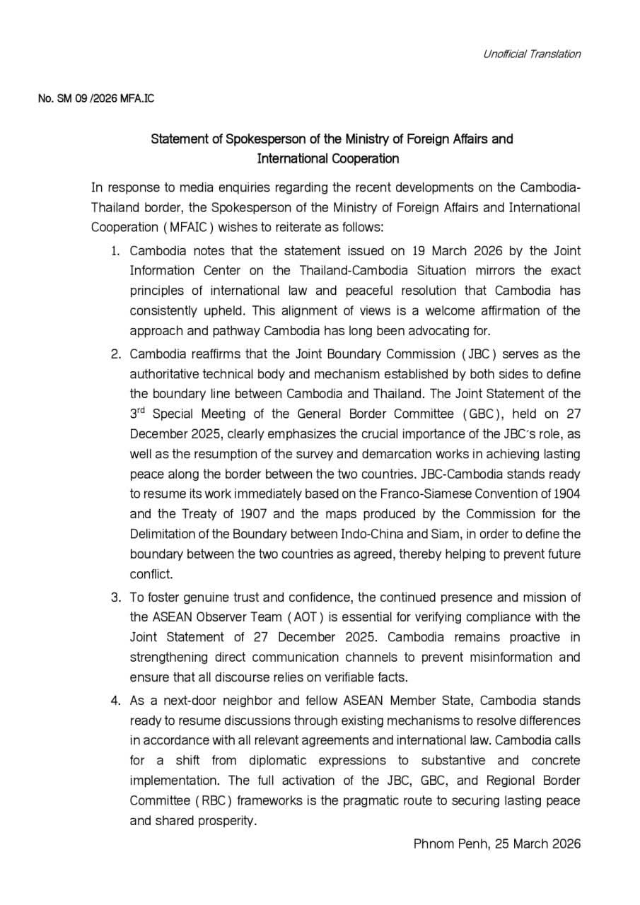 សេចក្តីថ្លែងការណ៍ របស់អ្នកនាំពាក្យក្រសួងការបរទេស និងសហប្រតិបត្តិការអន្តជាតិ Statement of Spokesperson of the Ministry of Foreign Affairs and International Cooperation