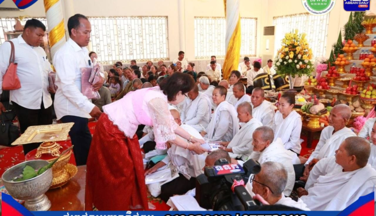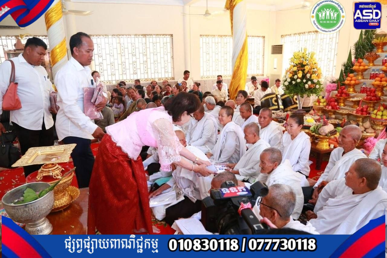 នាថ្ងៃទី២៩ ខែមីនា ឆ្នាំ២០២៦​លោកជំទាវបណ្ឌិត អ៊ុក ម៉ាលី សមាជិកាគណៈកម្មការទី២ព្រឹទ្ធសភា និងឯកឧត្តមបណ្ឌិតសភាចារ្យ ម៉ា ឈឿន តំណាងរាស្ត្រមណ្ឌលកំពង់ចាម ព្រមទាំងក្រុមគ្រួសារ បានអញ្ជើញប្រគេនទេយ្យវត្ថុ និងប្រគេនបច្ច័យកសាងដល់វត្តចំនួន៧ និងរាប់បាត្រ នៅស្រុកកំណើតលោកជំទាវបណ្ឌិត ស្ថិតក្នុងភូមិជ្រៃយោង ឃុំអង្គតាសោម ស្រុកត្រាំកក់ ខេត្តតាកែវ។