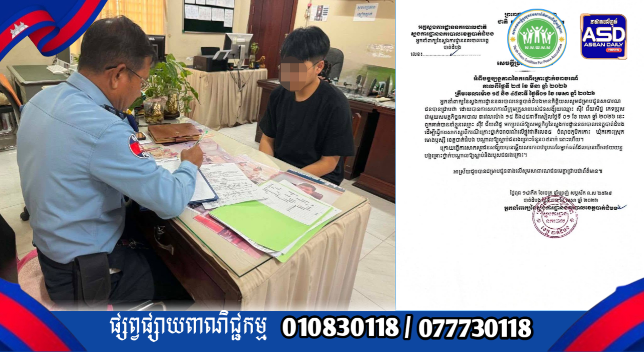 (ខេត្តបាត់ដំបង)៖ នៅរសៀលថ្ងៃទី១ ខែមេសា ឆ្នាំ២០២៦នេះ ជ/នប/ង្កដែលបើករថយន្ដបុ//កមនុស្សស្លា//ប់៦នាក់ នៅខេត្តបាត់ដំបង ដែលជាកូនស្នងការរងម្នាក់នៅខេត្តបន្ទាយមានជ័យ បានចូលខ្លួនសារភាព នៅចំពោះមុខសមត្ថកិច្ចស្នងការដ្ឋាននគរបាលខេត្តបាត់ដំបង និងបានទទួលស្គាល់ថាខ្លួនគឺជាអ្នកបើករថយន្តបុ/កបណ្តាលឱ្យមនុស្សស្លា//ប់ចំនួន៦នាក់ នៅខេត្តបាត់ដំបងស្លា//ប់ប្រាកដមែន បន្ទាប់ពីគេចខ្លួនអស់រយៈពេលប៉ុន្មានថ្ងៃក្រោយកើតហេតុ។