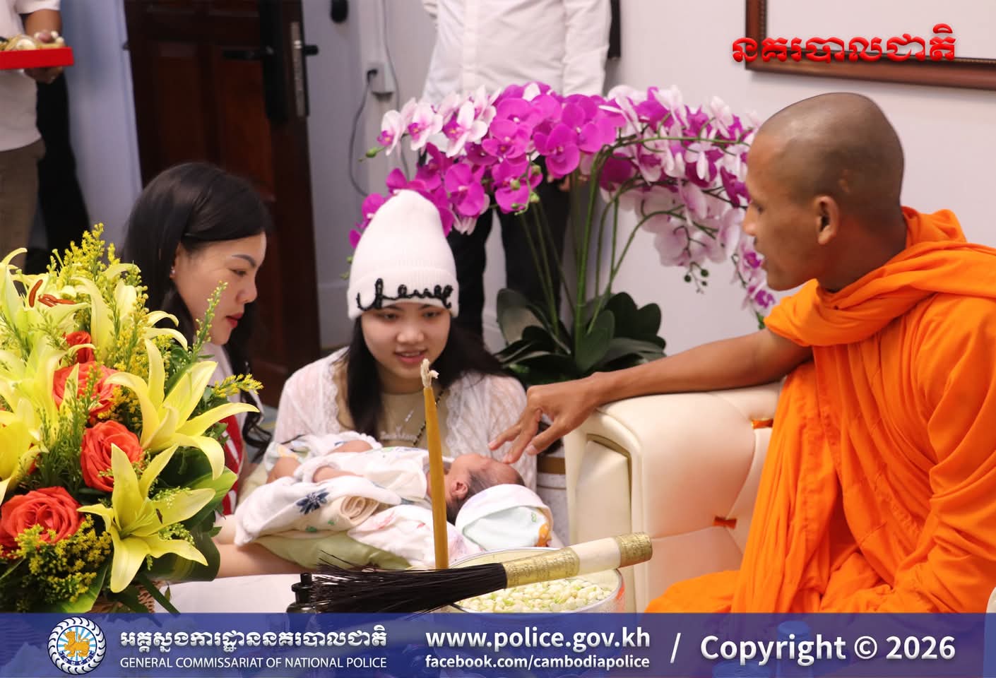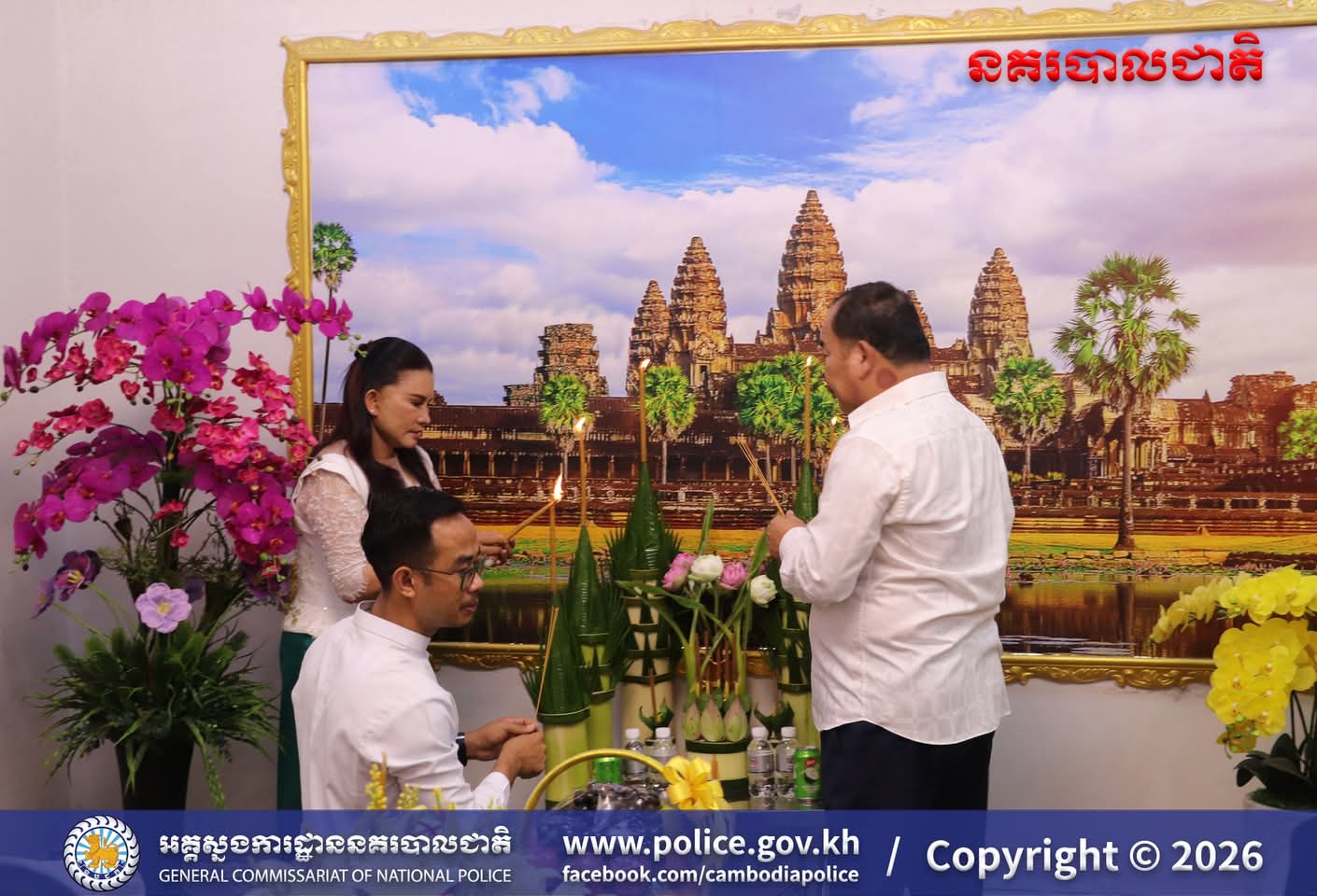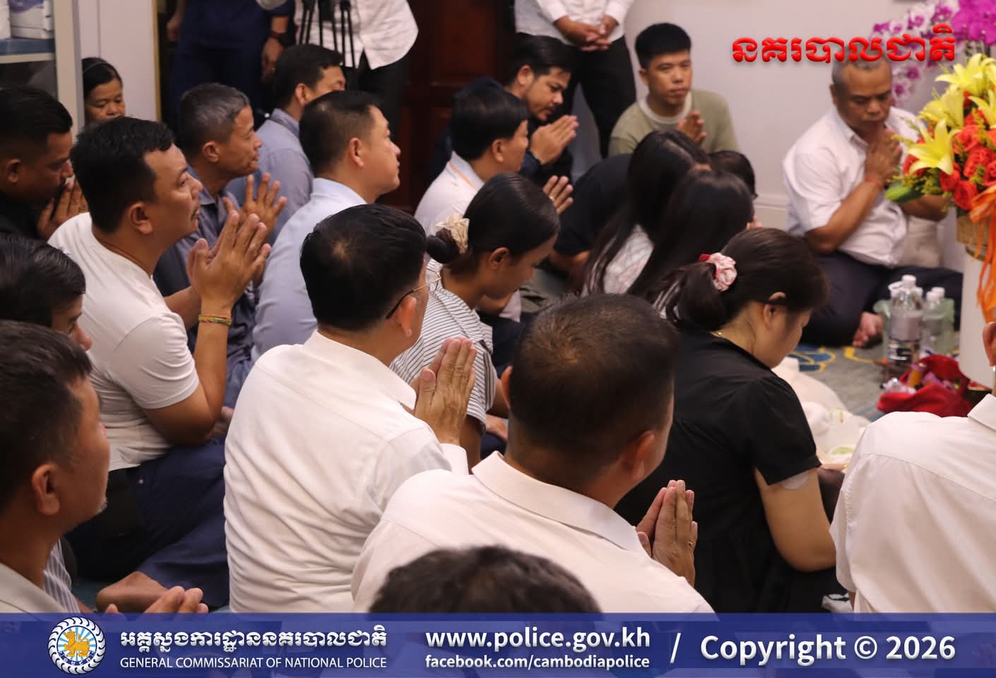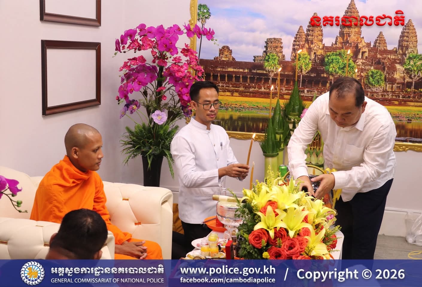 (រាជធានីភ្នំពេញ)៖ ក្នុងបរិយាកាសរីករាយនៃការត្រៀមអបអរសាទរ ពិធីបុណ្យចូលឆ្នាំថ្មីប្រពៃណីជាតិខ្មែរខាងមុខនេះ នាសៀល ថ្ងៃទី០១ ខែមេសា ឆ្នាំ២០២៦នេះ ឯកឧត្តម ឧត្តមសេនីយ៍ឯក ឃីង សារ៉ាត់ នាយកមន្ទីរប្រឆាំងបទល្មើសគ្រឿងញៀននិង លោកជំទាវ ឆាយ សាលីន បាននិមន្តព្រះអង្គធម្មវនរាសី ចន្ទមុន្នី ដើម្បីសូត្រមន្ត លើករាសី និងសុំសេចក្តីសុខសិរីសួស្តី ជ័យមង្គល ដល់ថ្នាក់ដឹកនាំនិងមន្ត្រីនៃមន្ទីរប្រឆាំងបទល្មើសគ្រឿងញៀន និង បានឧទ្ទិសកុសលផលបុណ្យទាំងឡាយ ជូនចំពោះដួងវិញ្ញាណក្ខន្ធ នៃកងកម្លាំងនគរបាលមន្ទីរប្រឆាំងបទល្មើសគ្រឿងញៀនដែល បានពលីដើម្បីបុព្វហេតុជាតិមាតុភូមិផងដែរ។