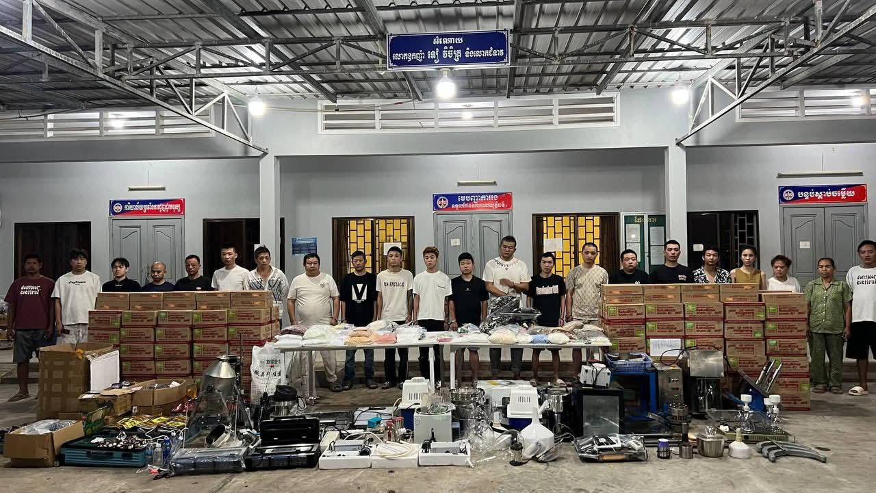 (ខេត្ត​ព្រះសីហនុ)​៖ កាលពីវេលាម៉ោង១៧ និង៣០នាទី ថ្ងៃទី៣១ ខែមីនា ឆ្នាំ២០២៦ កម្លាំងកងរាជអាវុធហត្ថខេត្តព្រះសីហនុ ដឹកនាំដោយលោកវរសេនីយ៍ទោ សួ ស៊ន ប្រធានមន្ទីរស្រាវជ្រាវ និងបង្ក្រាបបទល្មើសកងរាជអាវុធហត្ថខេត្តព្រះសីហនុ ដោយមានការសម្របសម្រួលនីតិវិធីពីលោក វុធ សាវី ព្រះរាជអាជ្ញារង អមសាលាដំបូងខេត្តព្រះសីហនុ បានចុះបង្ក្រាបករណីករណីផលិត ជួញដូរ រក្សាទុកដោយខុសច្បាប់នូវសារធាតុញៀន នៅចំណុចសណ្ឋាគារស៊ីជី ស្ថិតក្នុងភូមិ៥ សង្កាត់លេខ៤ ក្រុងព្រះសីហនុ ខេត្តព្រះសីហនុ ដោយបានធ្វើការឃាត់ខ្លួនជនសង្ស័យចំនួន ២២នាក់ (ស្រី៣) ជនជាតិចិន ចំនួន១៨នាក់ , ជនជាតិវៀតណាម ចំនួន១នាក់ (ស្រី) ជនជាតិខ្មែរ ចំនួន៣នាក់ (ស្រី១នាក់)