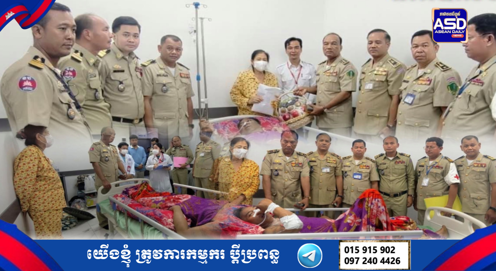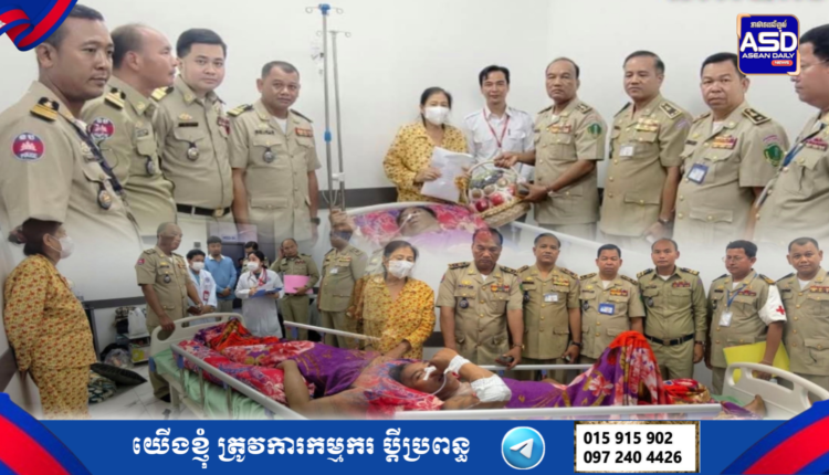 លោកឧត្តមសេនីយ៍ឯក លី ឡាយ ដឹកនាំក្រុមការងារនាយកដ្ឋាន សួរសុខទុក្ខ លោកឧត្តមសេនីយ៍ទោ វ័យ ធឿន ដែលកំពុង សង្គ្រោះបន្ទាន់នៅមន្ទីរពេទ្យ តេជោសន្តិភាព