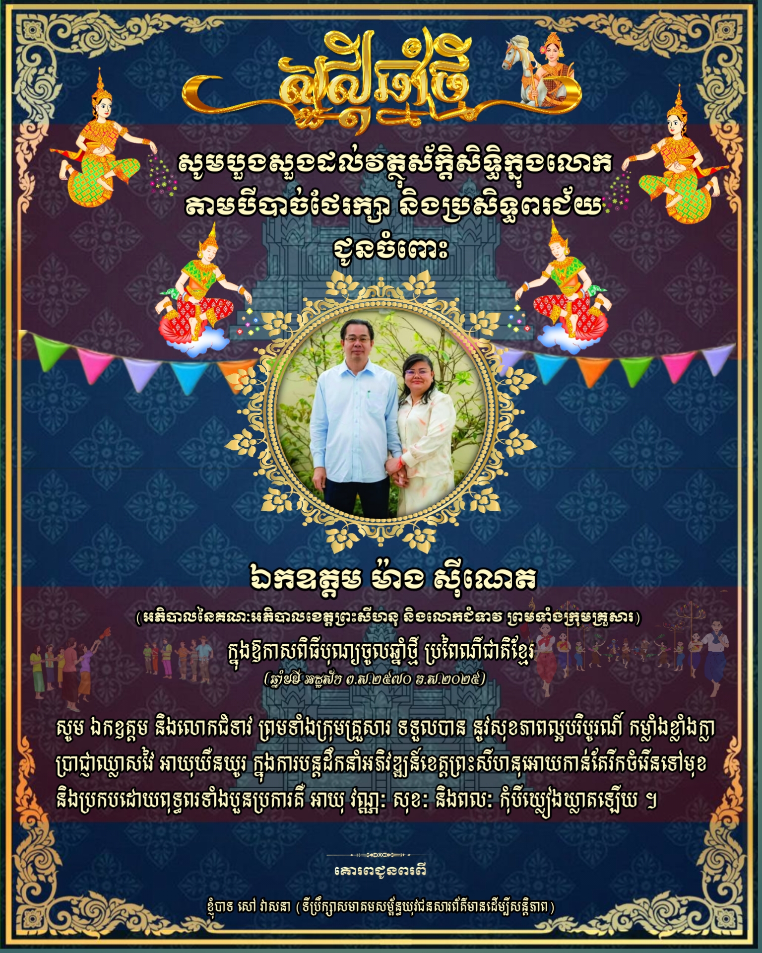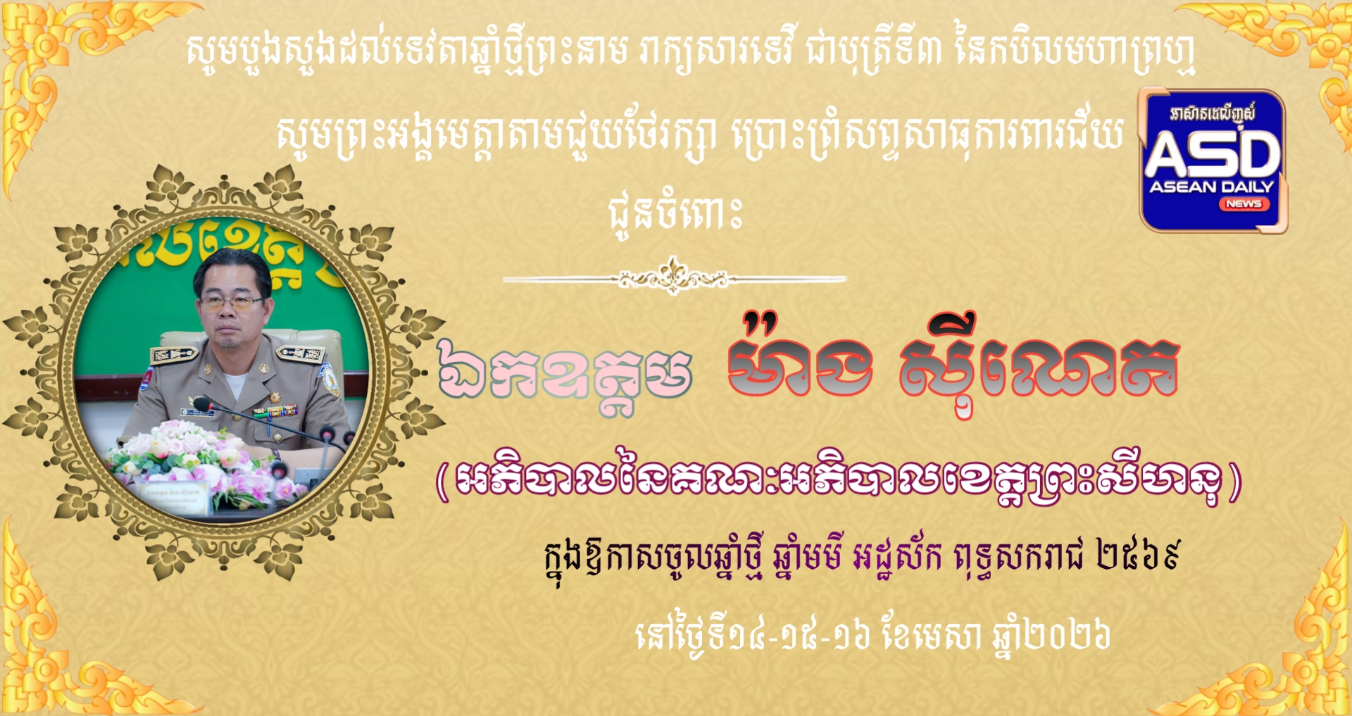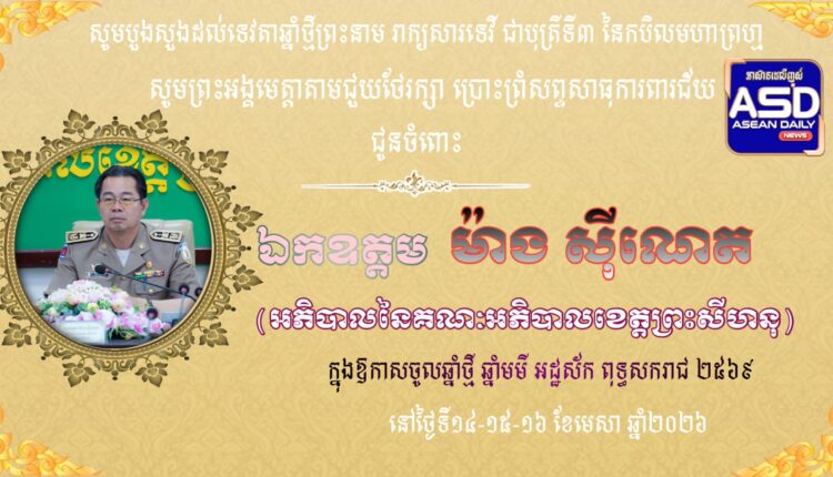 សារលិខិត​ជូនពរ​ ឯកឧត្តម​ ម៉ាង​ ស៊ីណេត​ អភិបាល​នៃ​គណៈ​អភិបាល​ខេត្ត​ព្រះសីហនុ​ ក្នុងឱកាសពិធីបុណ្យចូលឆ្នាំថ្មី ប្រពៃណី​ជាតិខ្មែរ​ ឆ្នាំមមី អដ្ឋស័កព.ស ២៥៧០ ដែលនឹងឈានចូល មកដល់នាពេលដ៏ខ្លីខាងមុខនេះ.