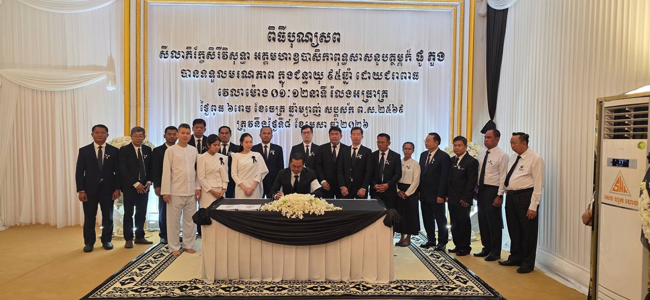 (រាជធានីភ្នំពេញ): រសៀលថ្ងៃទី១០ ខែមេសា ឆ្នាំ២០២៦ ឯកឧត្តម ម៉ាង ស៊ីណេត អភិបាល នៃគណៈអភិបាលខេត្តព្រះសីហនុ បាន អញ្ជើញដឹកនាំគណៈប្រតិភូខេត្តព្រះសីហនុ គោរពវិញ្ញាណក្ខន្ធសពអគ្គមហាឧបាសិកា ពុទ្ធសាសនូបត្ថម្ភក៍ ធូ ភួង ត្រូវជាម្តាយ បង្កើតឯកឧត្តមនាយឧត្តមសេនីយ៍ ស ថេត អគ្គស្នងការនគរបាលជាតិ និងលោកជំទាវ ស ស៊ីណា ស ថេត។