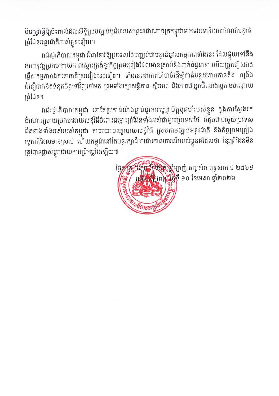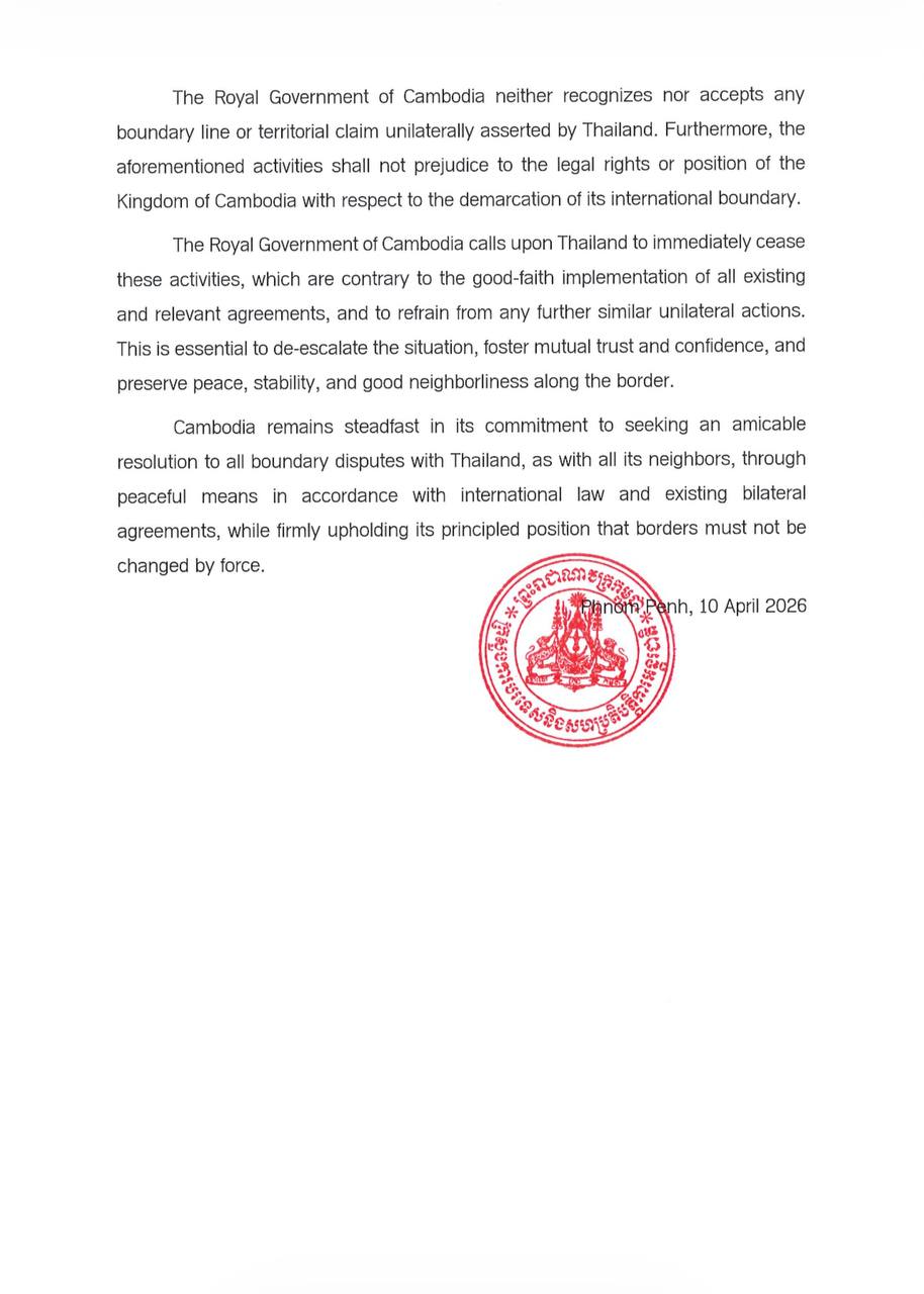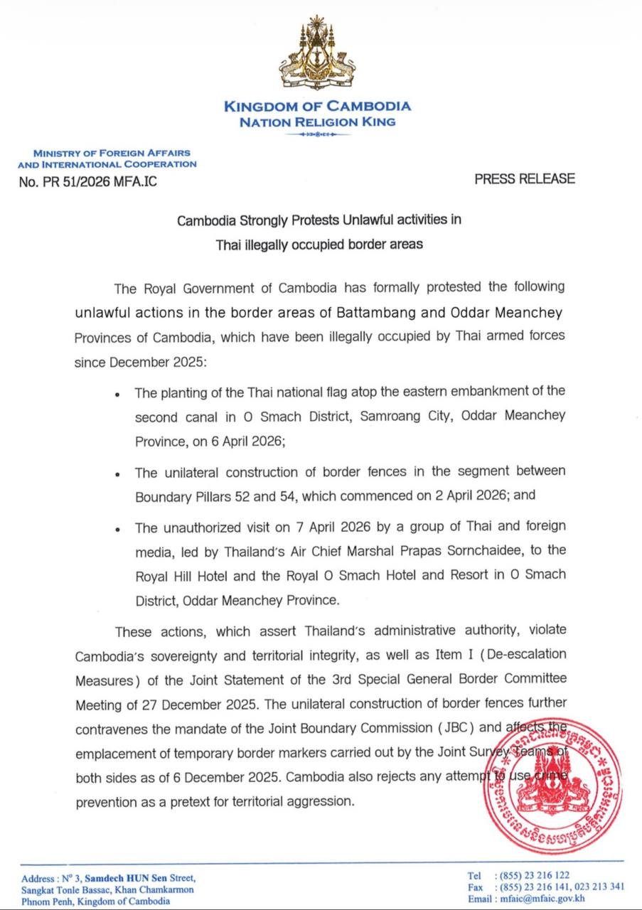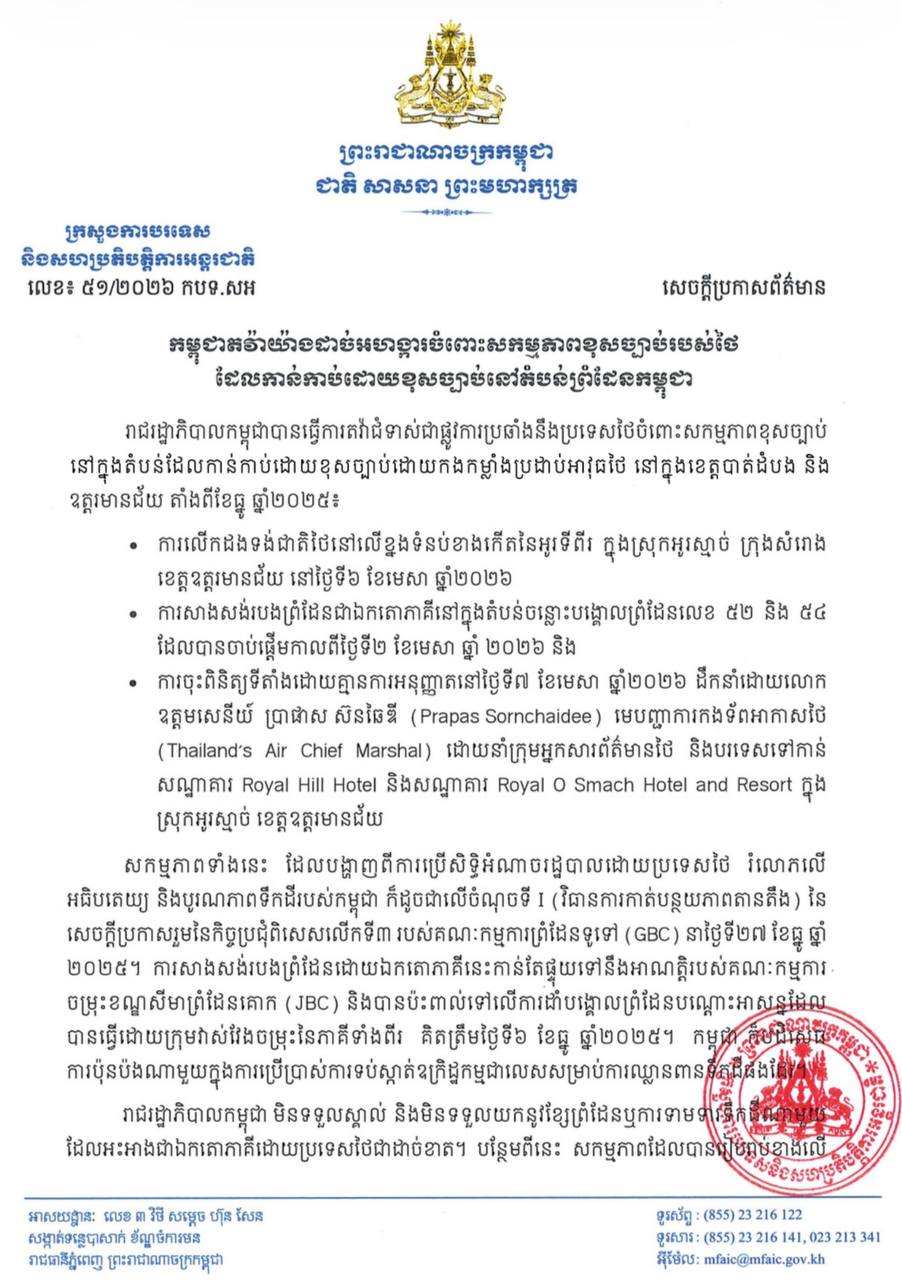 កម្ពុជា តវ៉ាយ៉ាងដាច់អហង្ការចំពោះសកម្មភាព ខុសច្បាប់របស់ថៃ ដែលកាន់កាប់ដោយខុសច្បាប់ នៅតំបន់ព្រំដែនកម្ពុជា Cambodia Strongly Protests Unlawful activities in Thai illegally occupied border areas